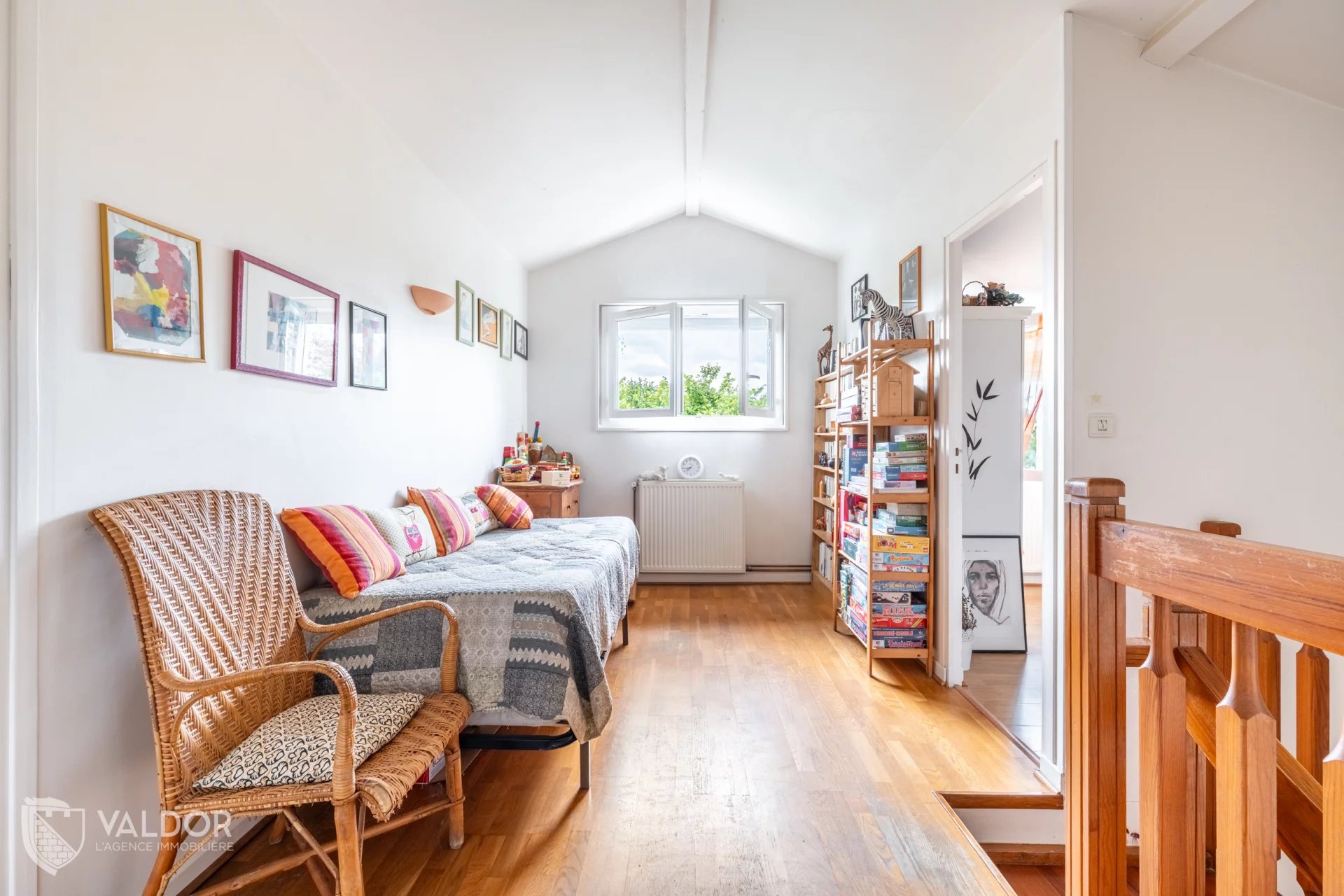 Cette maison présente de nombreux atouts grâce à sa disposition fonctionnelle. Il est tout à fait possible de vivre de plain-pied grâce aux trois chambres et à la salle de bains situées au rez-de-chaussée. L’espace de vie comprend un hall d’entrée, une cuisine séparée, confortables, un espace salle à manger et un salon avec cheminée. À l’étage, un grand palier pouvant servir de bureau dessert trois chambres mansardées, une salle de bains avec fenêtre, carrelage toute hauteur, ainsi qu’un espace de stockage ou bureau supplémentaire.