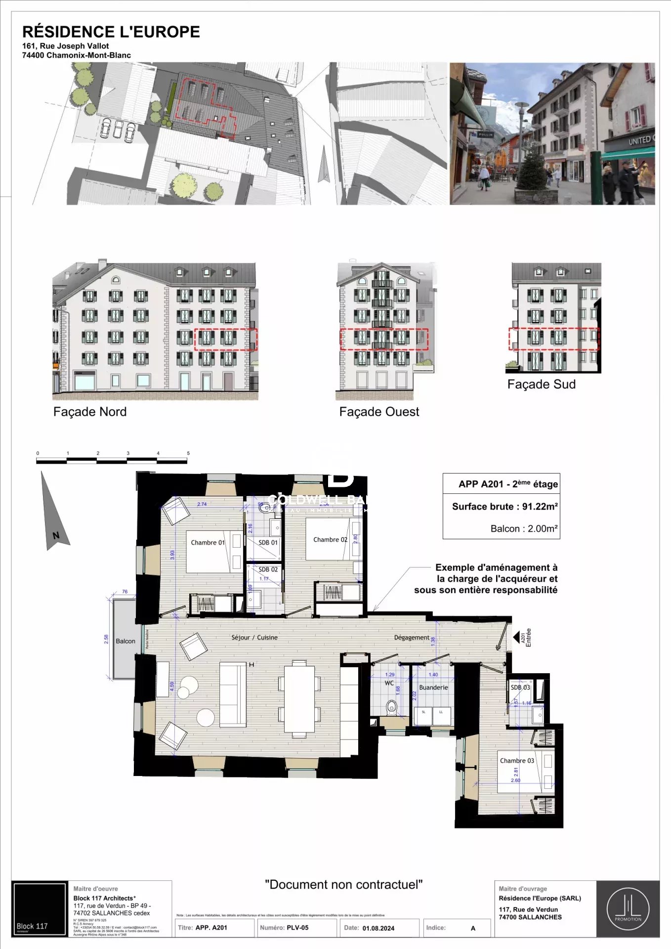Au coeur du centre ville historique de Chamonix se trouve la résidence de l'Europe et ses 12 logements. Faites le choix d'habiter dans un bâtiment historique de Chamonix, l'ancien hôtel de l'Europe, qui sera rénové en préservant le caractère Chamoniard de la bâtisse. Les appartements de la Résidence sont vendus en plateaux bruts viabilisés. Ces espaces, sans cloisons intérieures, vous offrent la liberté de créer un appartement à votre goût, avec les raccordements et évacuations déjà prévus. Les attentes techniques seront délivrées dans les appartements, facilitant ainsi vos futurs aménagements. Tous les appartements sont vendus avec casier à ski et cave. Le promoteur vous propose une option pour un aménagement intérieur, en sus du prix d'acquisition si vous souhaitez être accompagné. Pour cet appartement T4 de 91.22m², une des propositions d'aménagement est la suivante : entrée, buanderie, WC, 3 chambres en suite avec salle de douche, un salon séjour avec cuisine ouverte donnant sur un balcon. Vous pourrez profiter de cet appartement à l'été 2026.