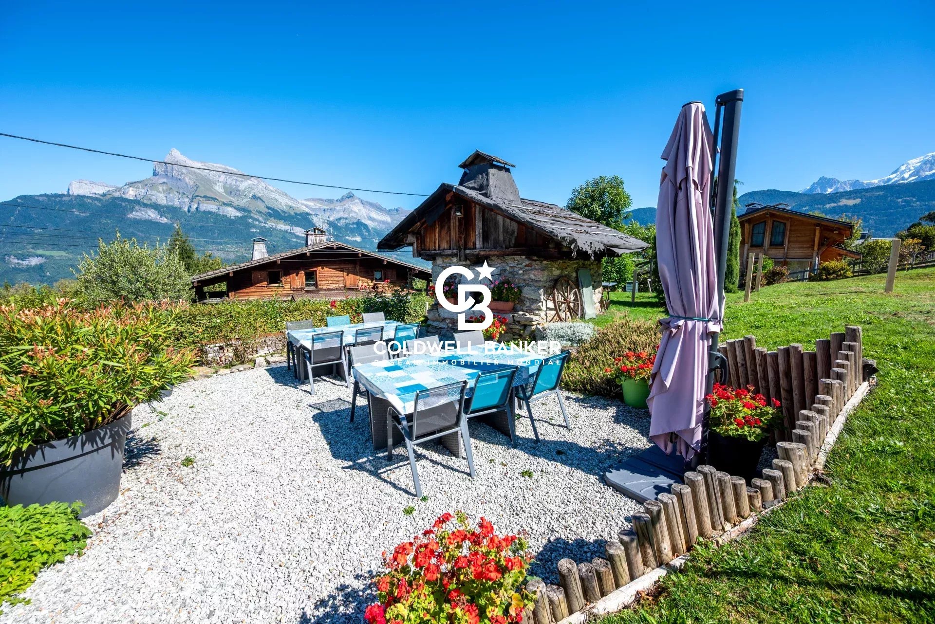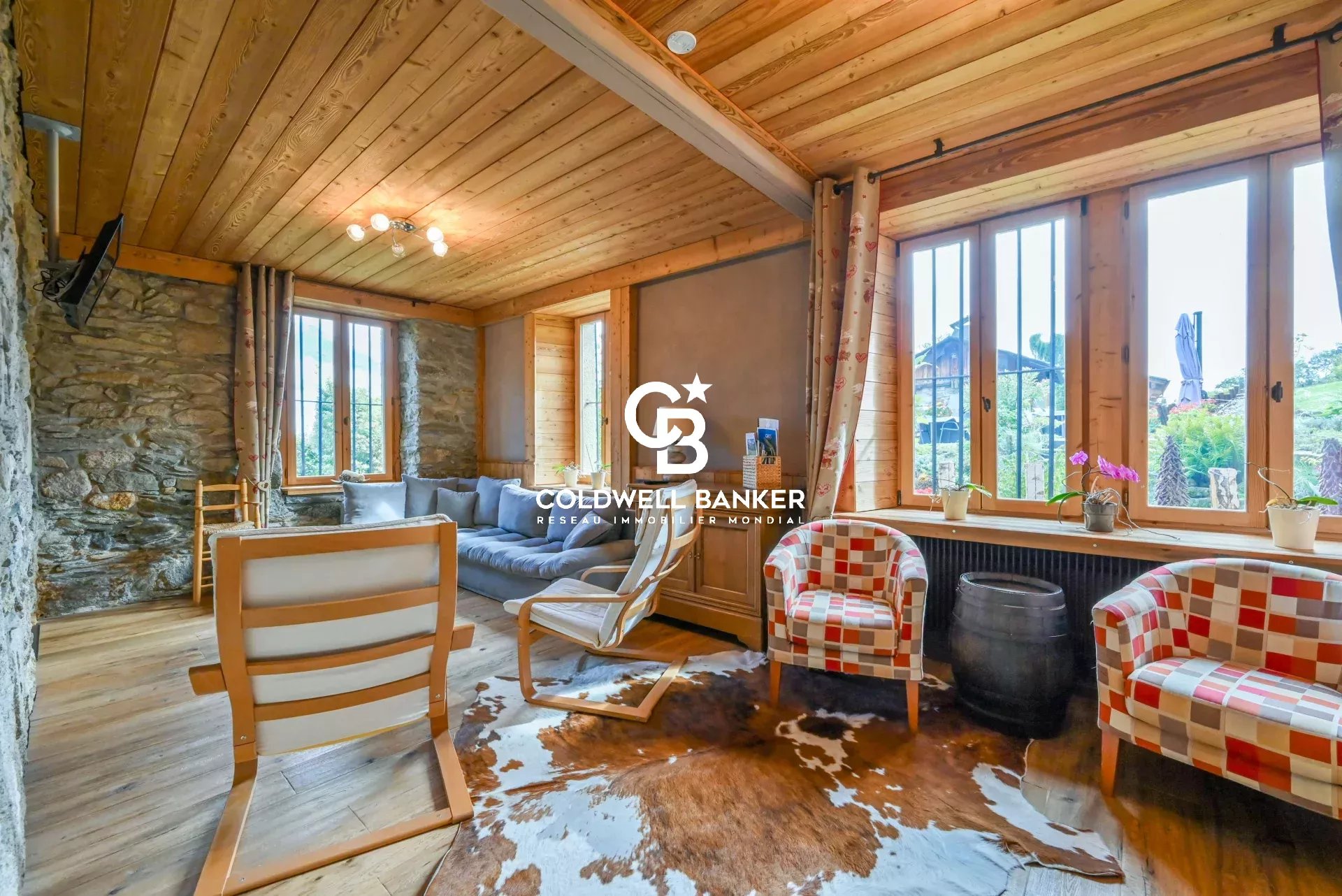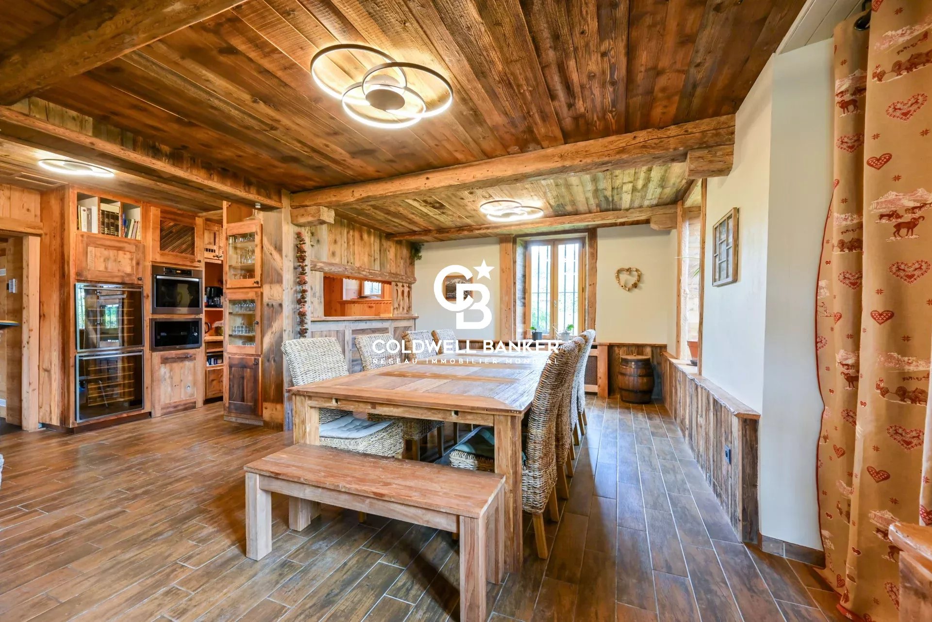 Face à la chaîne du Mont-Blanc, dans un cadre champêtre et bucolique, édifiée sur une parcelle de terrain de 2032 m², cette authentique ferme savoyarde de 1876, a été entièrement rénovée en chambres d'hôtes et appartements. Pour une surface totale d'environ 435 m², elle comprend : Au rez de chaussée : local débarras, local chaufferie, WC, pièce à usage de laverie et réserve froide, une grande salle de réception avec cheminée et coin cuisine Au rez de terrasse : un appartement (2 Chambres, Mezzanine, séjour avec terrasse et jardin, salle de bains,WC), un 2ème appartement (Séjour-Cuisine, salle de douche-WC, chambre), un 3ème appartement (Séjour-cuisine, salle de douche-wc, chambre) et enfin une chambre d'hôtes avec salle de douche.wc. Au niveau combles: 2 chambres d'hôtes avec salle de douche-wc et 2 chambres d'hôtes avec salle de bains-wc Toutes les chambres et appartements, aux prestations de grand standing, ont été rénové avec gout dans la tradition savoyarde. Le magnifique terrain offre une vue à 180° sur l'ensemble du massif du Mt-Blanc, la Chaîne des Fiz et la Chaîne des Aravis. L'accès est aisé en toutes saisons et le stationnement est facilité par un grand nombre de places. Les jardins, exposés Est-Sud-Ouest, permettent un ensoleillement de qualité Eté comme Hiver.