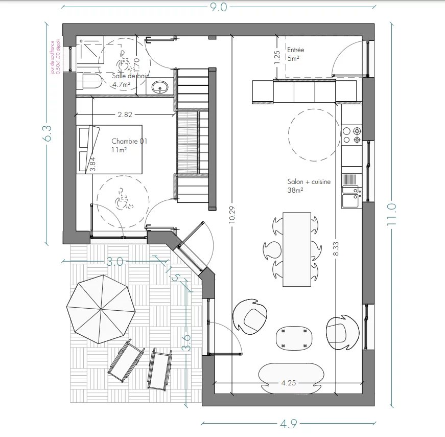 Maison contemporaine élevée sur vide sanitaire et 494 m² de terrain clos et comprenant : - au rez-de-chaussée : entrée, pièce de vie regroupant salon / salle à manger et une cuisine ouverte à aménager, une chambre, salle d'eau avec wc, - à l'étage : un palier dessert 4 chambres et une salle de bains avec wc - combles/grenier au-dessus MAISON A HAUTE PERFORMANCE ENERGETIQUE Confort inégalé Eté comme Hiver Plancher bas sur terre-plein Isolation sous dalle 200mm + isolation sous chape flottante 80mm de laine de roche (Up final = 0,13kW/m2.°K) Plancher chauffant. Ventilation mécanique Double-flux à très haute performance > 85%, filtrage de l'air