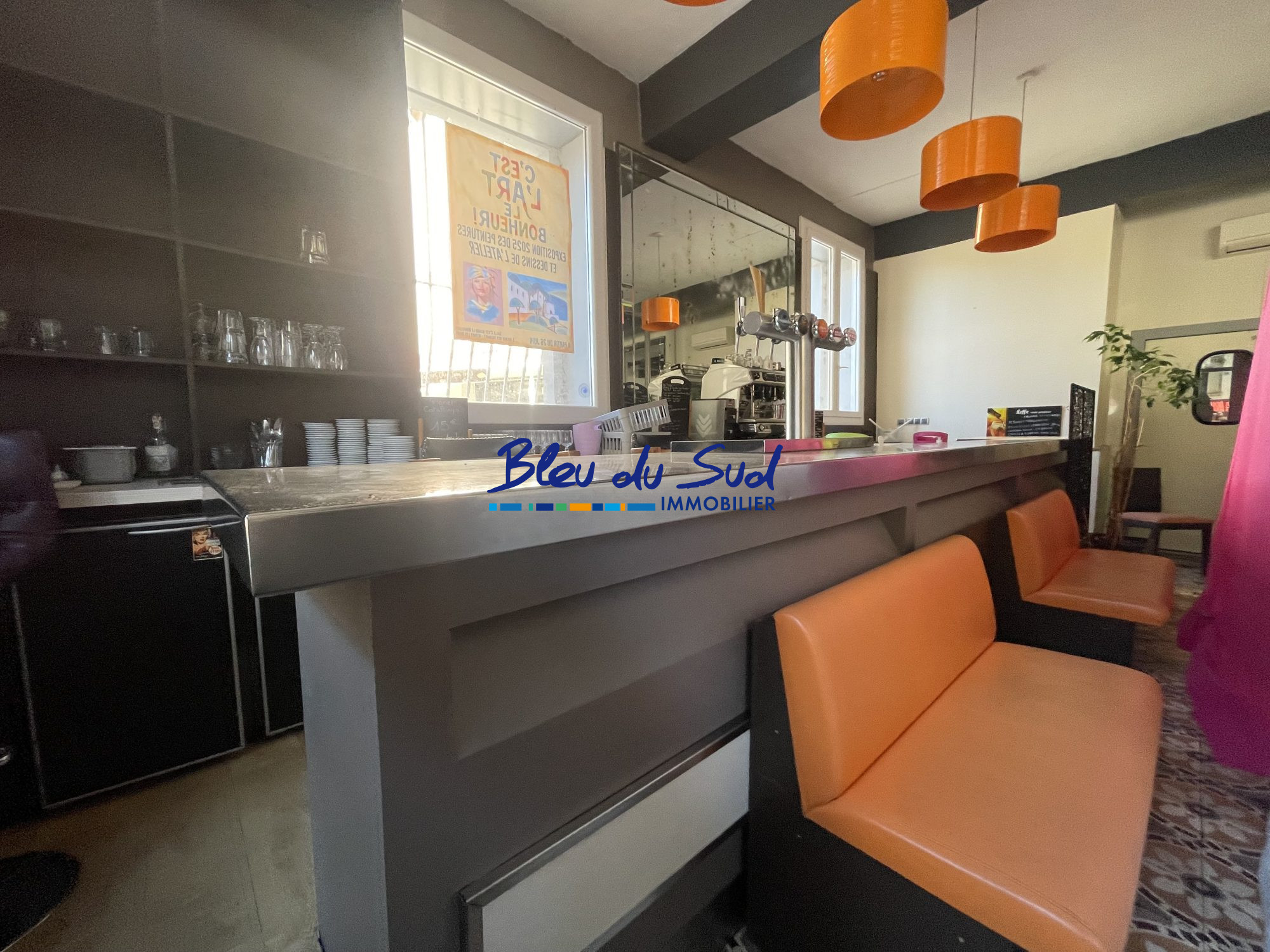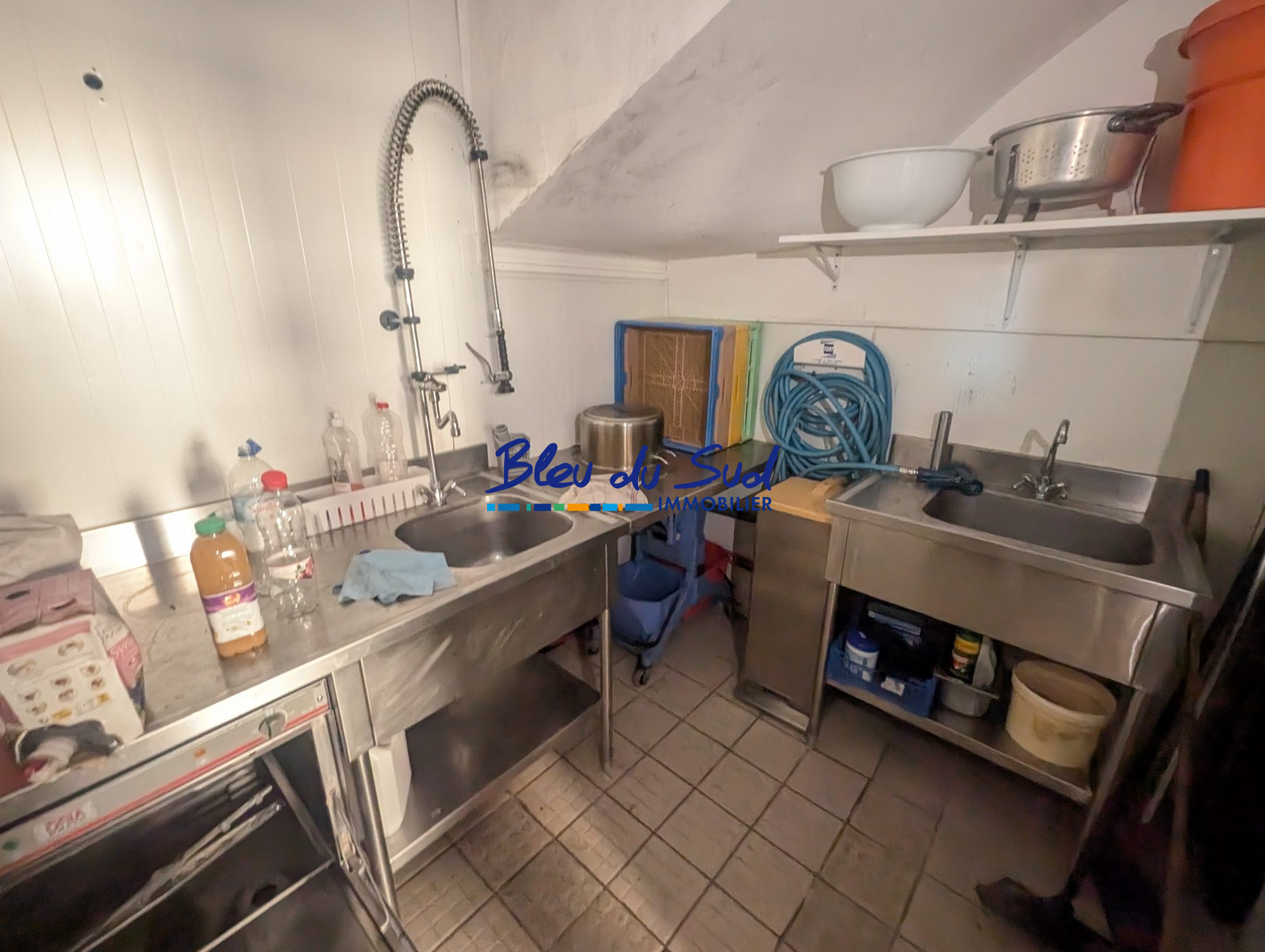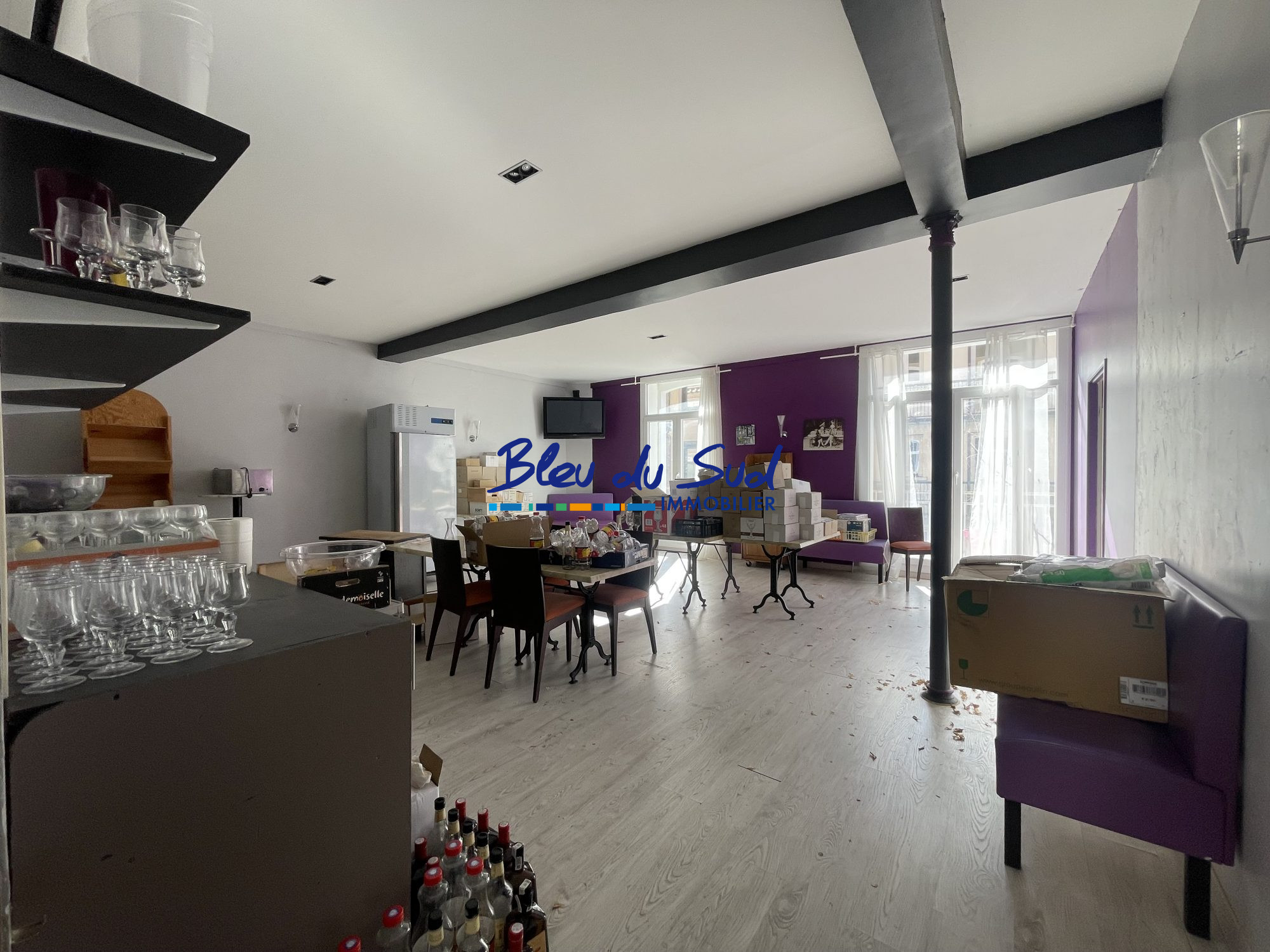 * Au RDC : un bar, une grande salle, une cuisine professionnelle entièrement équipée, sanitaires et bel espace vitrine.