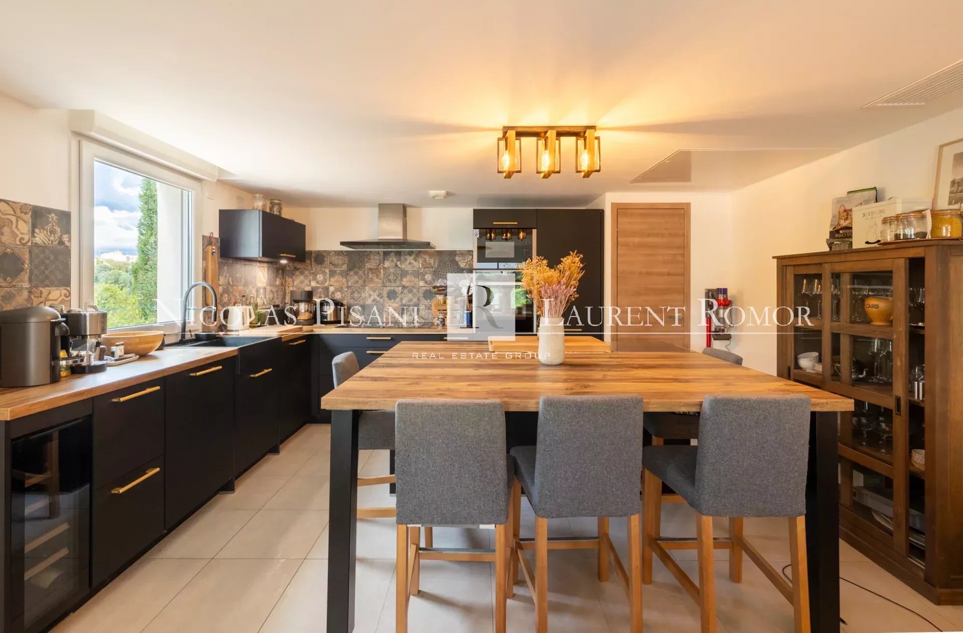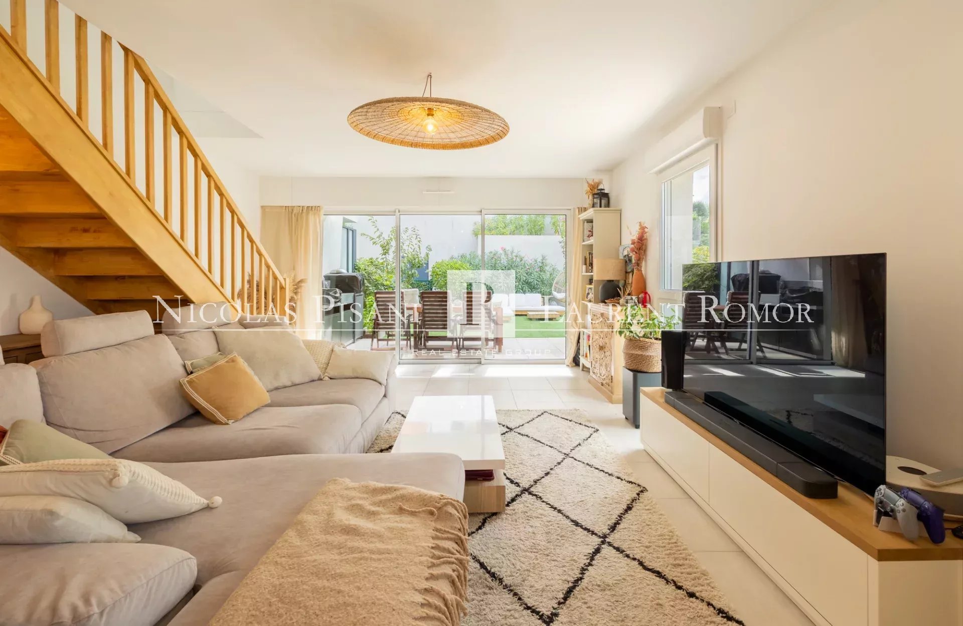 Au sein d’un lotissement sécurisé, cette villa mitoyenne de 75 m² se distingue par son confort moderne et son atmosphère paisible. Développée sur deux niveaux, elle propose au rez-de-jardin un vaste séjour de 40 m² avec cuisine américaine de qualité et accès direct à un jardin paysager de 100 m², idéal pour recevoir et se détendre. À l’étage, la chambre principale bénéficie d’une terrasse privative offrant une vue panoramique sur le Baou de Saint-Jeannet et les vignobles de Bellet. Une seconde chambre et une salle de bain complètent l'espace nuit. Un double garage fermé de 25 m² avec accès direct à la villa, ainsi que des équipements contemporains (climatisation gainée, alarme, fibre, chauffe-eau thermodynamique) renforcent le confort au quotidien. Encore sous garantie décennale, la résidence offre la sérénité de la colline niçoise tout en restant à proximité immédiate des commerces, écoles et axes de communication.