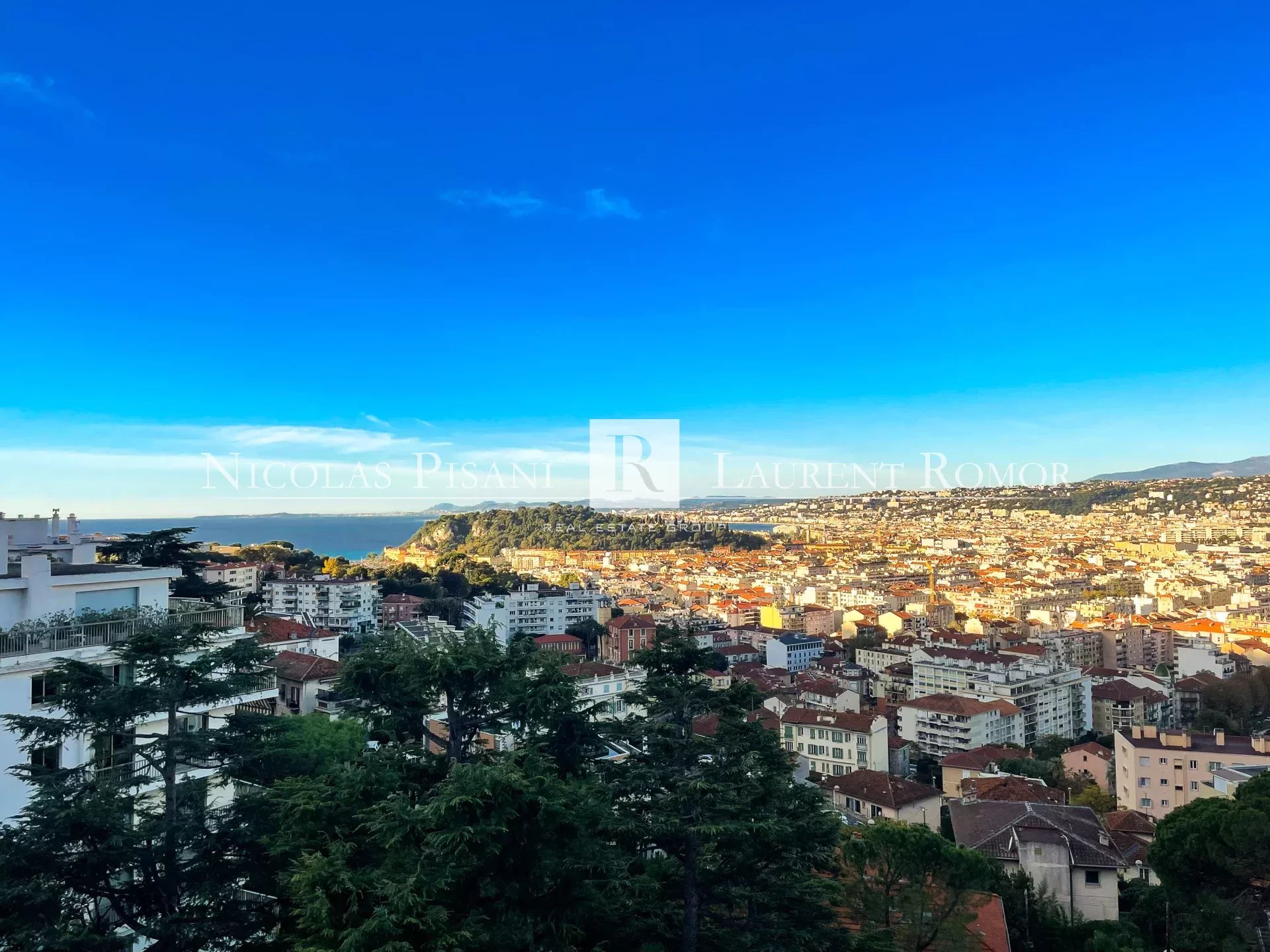 Situé dans le quartier résidentiel du Mont Alban, dans une résidence de grand standing, avec ascenseur, piscine, jardin et terrain de boules, ce 3 pièces d'environ 80 m², en dernier étage, jouit d'une vue panoramique sur le Château de Nice, la mer et la ville. L'appartement, traversant, se compose d'une belle entrée, d'un séjour ouvert sur une belle terrasse exposée à l'Ouest, de deux chambres avec chacune sa salle de douche/ bains et toilettes en-suite, d'une cuisine et de nombreux rangements. Un grand garage ainsi qu'une cave complètent ce bien. Honoraires d'agence à la charge du vendeur.