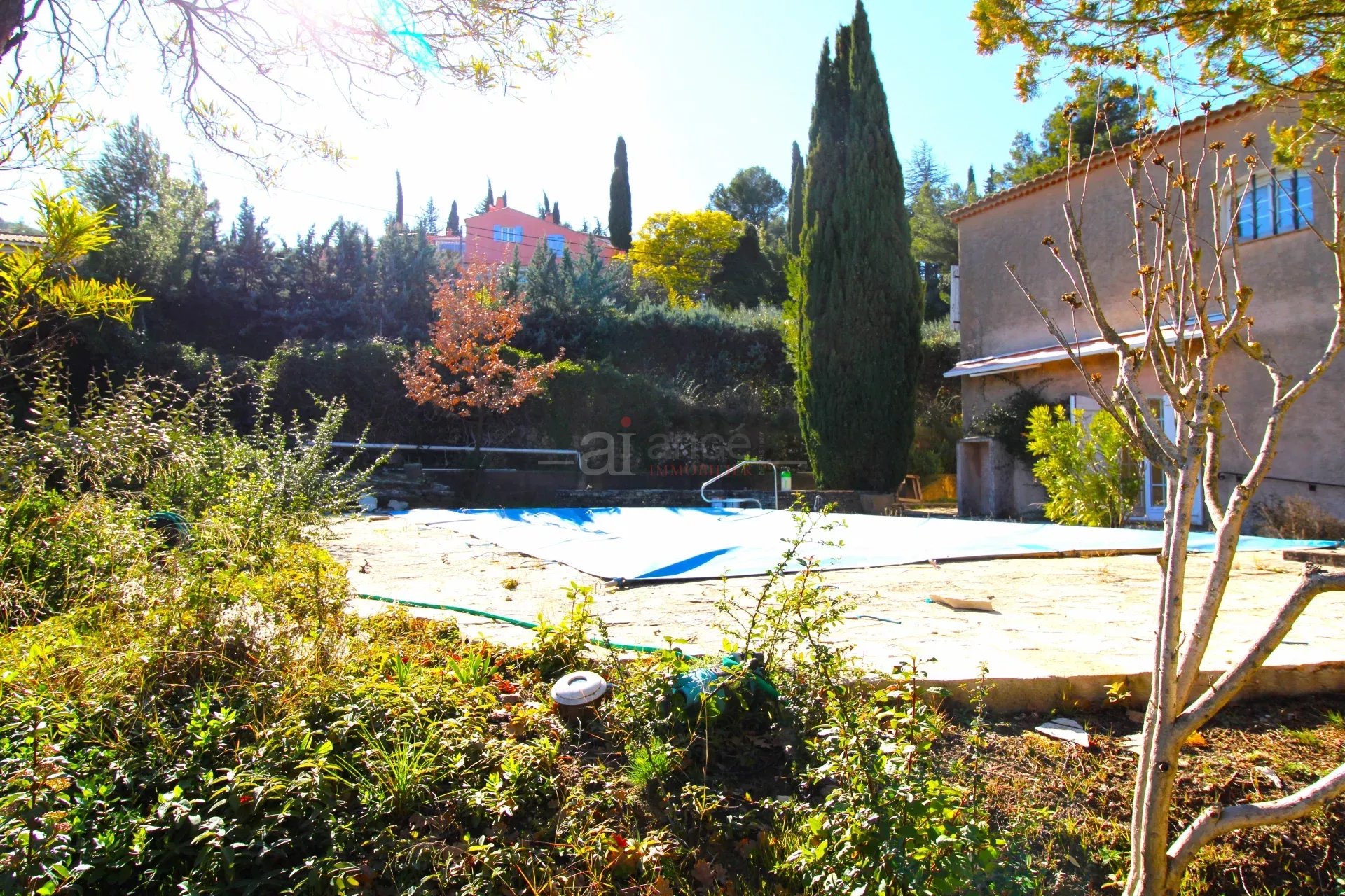 Sur un terrain de 2300 m² entièrement clos et très bien arboré avec grande PISCINE, belle maison style bastide provençale de 210 m². Cette demeure familiale sur 2 niveaux, vous offre de plain-pied un hall d'entrée desservant un immense séjour double traversant, plus 2 grandes pièces à aménager selon vos goûts, salle de bains, toilettes, cuisine à aménager. (possibilité de chambre parentale complète). A l'étage, 3 grandes chambres donnant sur une terrasse de 50 m², baignée de soleil, salle de bains et deuxième toilette. 3 terrasses vous permettront de choisir l'emplacement idéal suivant l'heure de la journée. D'importantes rénovations de base ont été effectuées (étanchéité de la terrasse, électricité, plomberie, tous les murs intérieurs doublés et équipés pour la pose de climatisation, toutes les peintures refaites) Rénovation à terminer. Fenêtres et portes fenêtres CINTREES Une deuxième bâtisse indépendante de 50 m² environ serait parfaite pour être aménagée en studio, chambre d'amis, ou espace de travail AUCUN VIS A VIS Une très nette amélioration du DPE à venir sera due au fait des rénovations effectuées, ( doublage intérieur des murs, nouveau mode de chauffage à installer par pompe à chaleur ou climatisation reversible, tous les branchements sont réalisés ) Cadre calme et agréable tout en étant proche de toutes les commodités. Les plages de BANDOL sont à 10 km et TOULON à 23 km. Idéal pour une famille recherchant un environnement serein sans renoncer à la proximité des écoles et des commerces. OPPORTUNITE à saisir pour ce petit coin de paradis. Disponible de suite NEGOCIABLE