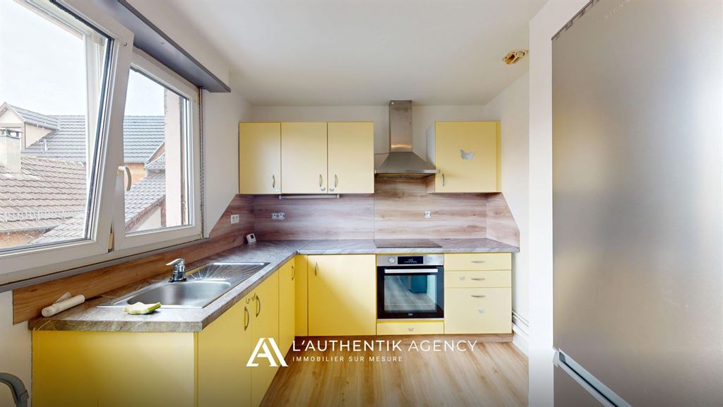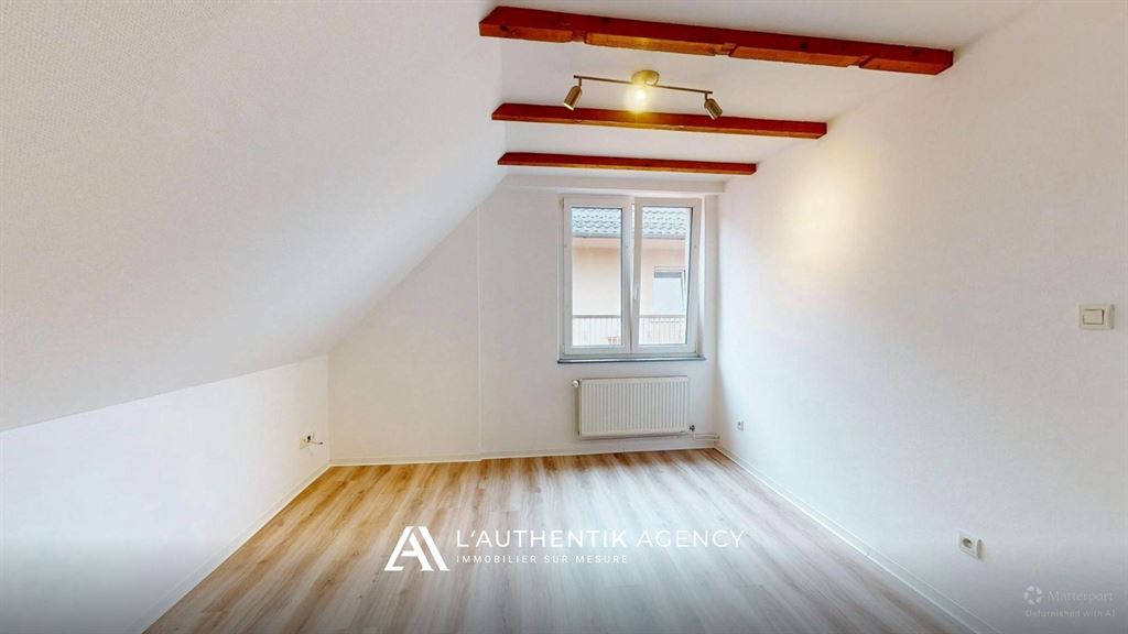 VALFF : Venez découvrir ce bel appartement 3 pièces de 60 m² habitables (76 m² au sol), idéalement situé au 1er et dernier étage d’une authentique maison alsacienne, rue Principale. Dès l’entrée, vous serez séduit par le cachet de l’ancien et les poutres apparentes qui confèrent à ce bien une atmosphère chaleureuse et unique. L’appartement se compose d'une entrée, d'une cuisine aménagée et équipée (hotte, plaque, four), d'un spacieux salon séjour lumineux, de deux chambres confortables et d'une salle de bain avec WC. En excellent état, cet appartement allie charme et fonctionnalité. Une cave privative vient compléter le bien, et le chauffage individuel au gaz assure votre confort au quotidien. Situé dans une cour partagée, le logement offre un cadre de vie paisible et convivial. Disponible immédiatement — il n’attend plus que vous !