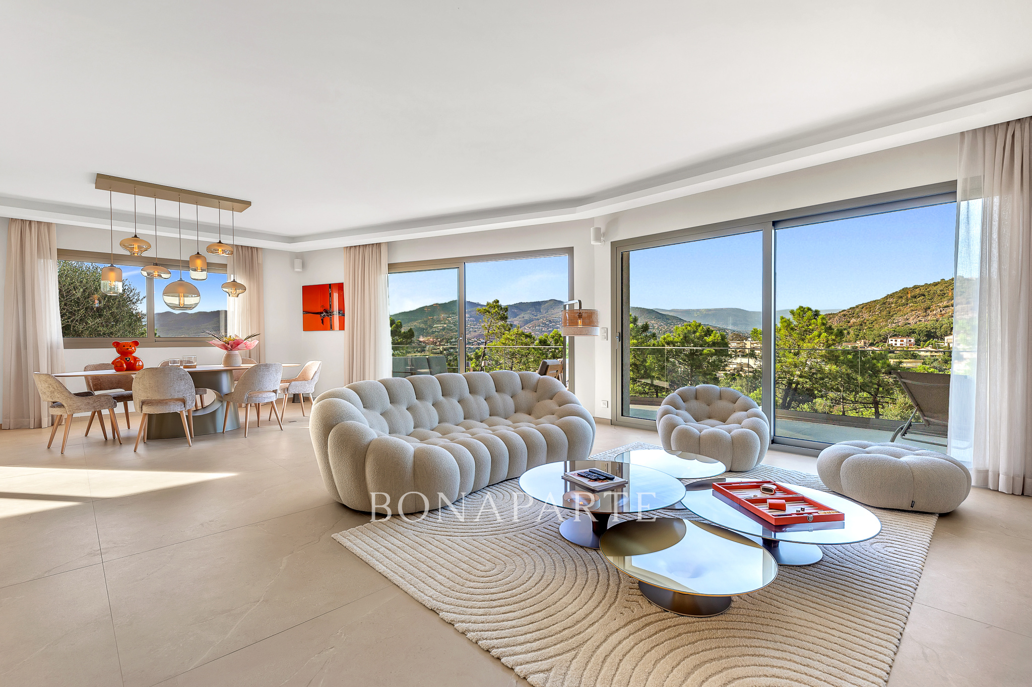 Des prestations de grand standing, hammam, salle de sport, climatisation réversible Daikin, système audio Sonos intégré avec des enceintes haute qualité, fibre internet avec 4 relais Wi-Fi, buanderie et nombreux rangements.