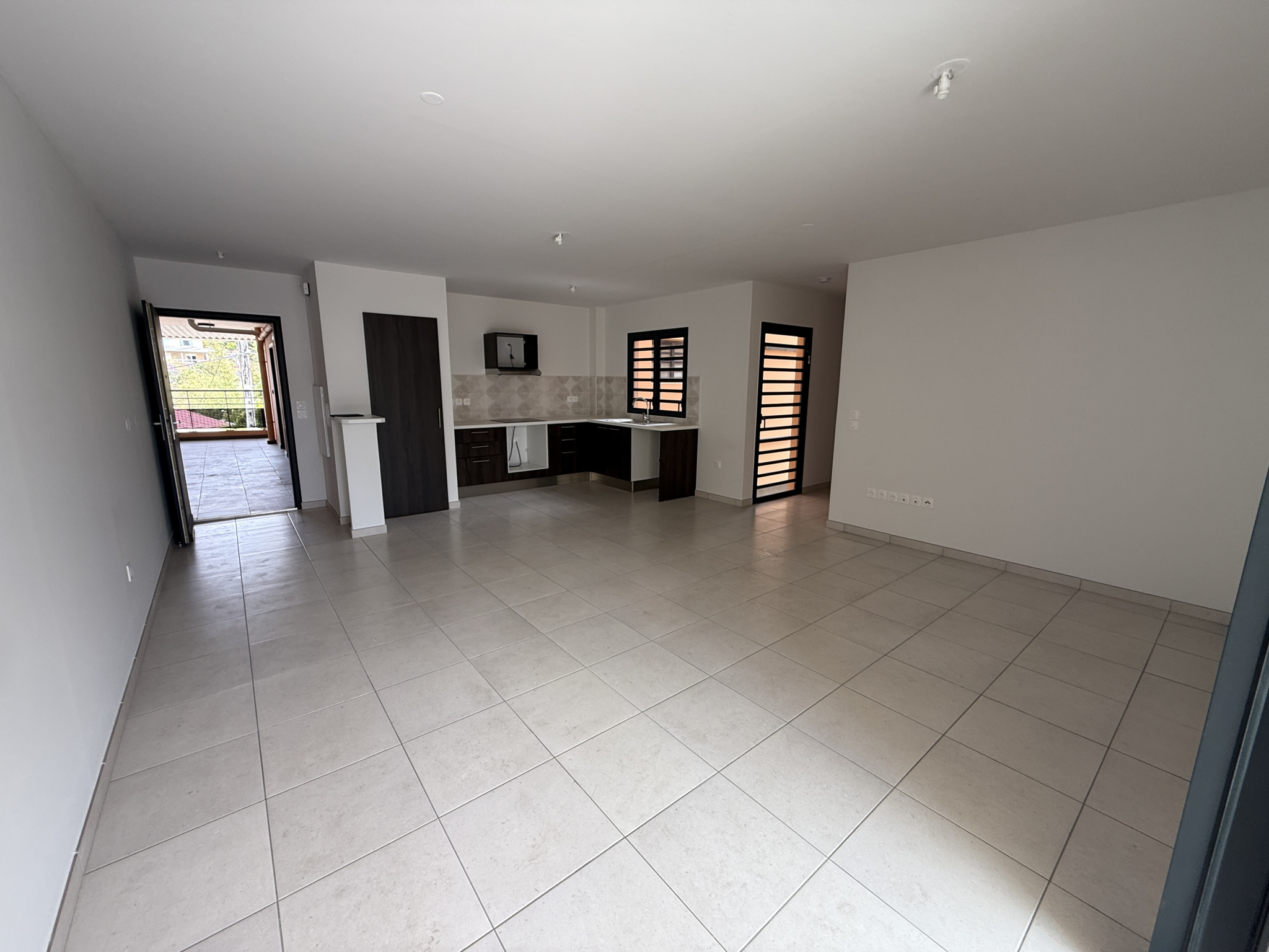 Vous recherchez un logement alliant confort moderne, emplacement pratique et qualité de vie ? Cet appartement neuf de type 3, d'une surface habitable de 68,16 m2 avec une spacieuse varangue de 13,52 m2, est fait pour vous ! Dès l'entrée, vous serez séduit par son espace de vie lumineux composé d'un salon-séjour convivial, idéal pour vos moments de détente ou pour recevoir vos proches. La cuisine ouverte, moderne et entièrement équipée (plaque de cuisson et hotte), vous permettra de préparer vos repas dans un cadre agréable et fonctionnel. Côté nuit, vous disposerez de deux belles chambres équipées de brasseurs d'air, offrant confort et fraîcheur tout au long de l'année. La salle de bain est soigneusement aménagée avec une douche à l'italienne, un meuble vasque élégant et un WC. L'ensemble de l'appartement bénéficie d'une construction neuve et de prestations de qualité, assurant un excellent confort au quotidien. La varangue de 13,52 m2 prolonge agréablement l'espace de vie et vous permettra de profiter de moments de détente en extérieur -- un véritable atout pour vos repas en plein air ou vos soirées paisibles. Conditions de location : Justifier de revenus mensuels au minimum 2,7 fois le montant du loyer, Respect du revenu fiscal de référence maximum ( personne seule 37 731 EUR, couple 69 773 EUR, personne seule ou couple + personne à charge 73 808 EUR).