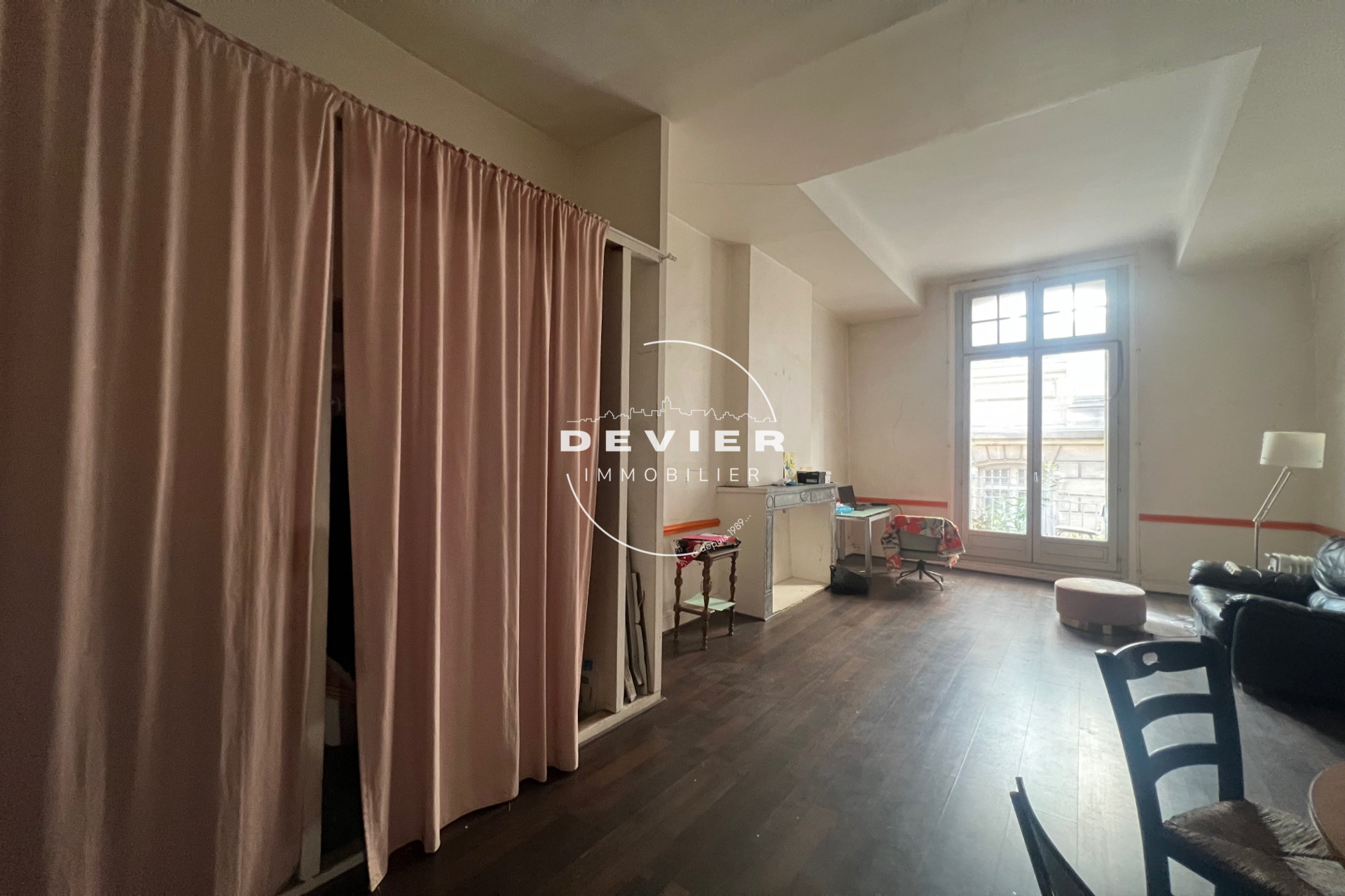 Au 1er étage d'un joli immeuble. Appartement de type T3 composé d'une entrée, une pièce de vie spacieuse avec cheminée et belle porte fenêtre donnant sur un balcon de ville. Cuisine séparée aménagée, deux chambres avec mezzanines, une salle de douche, wc indépendant.