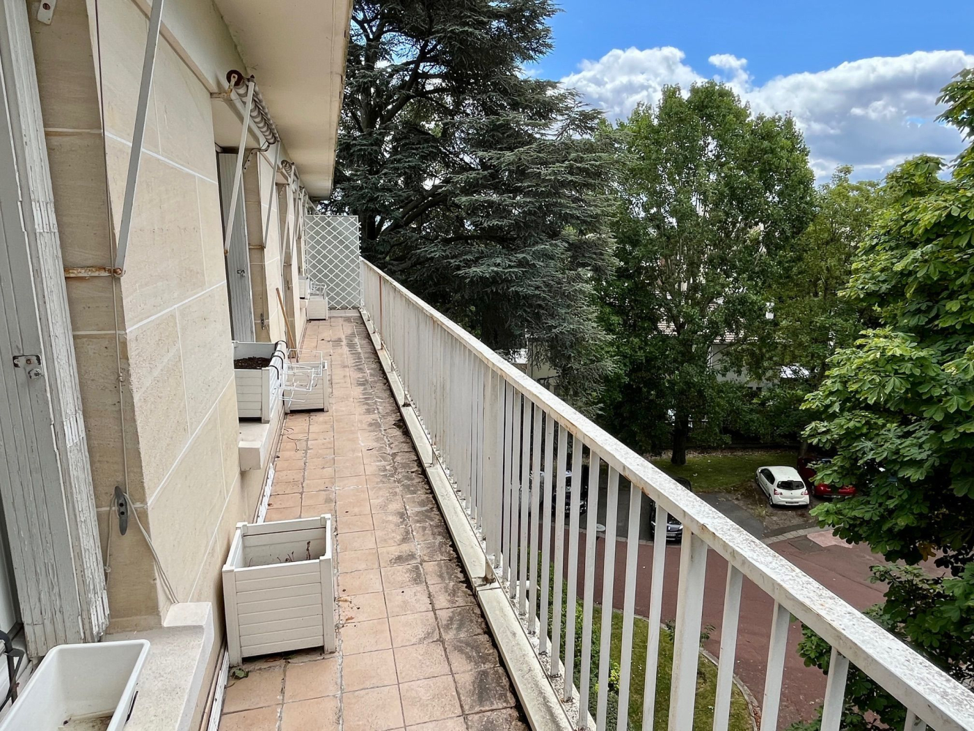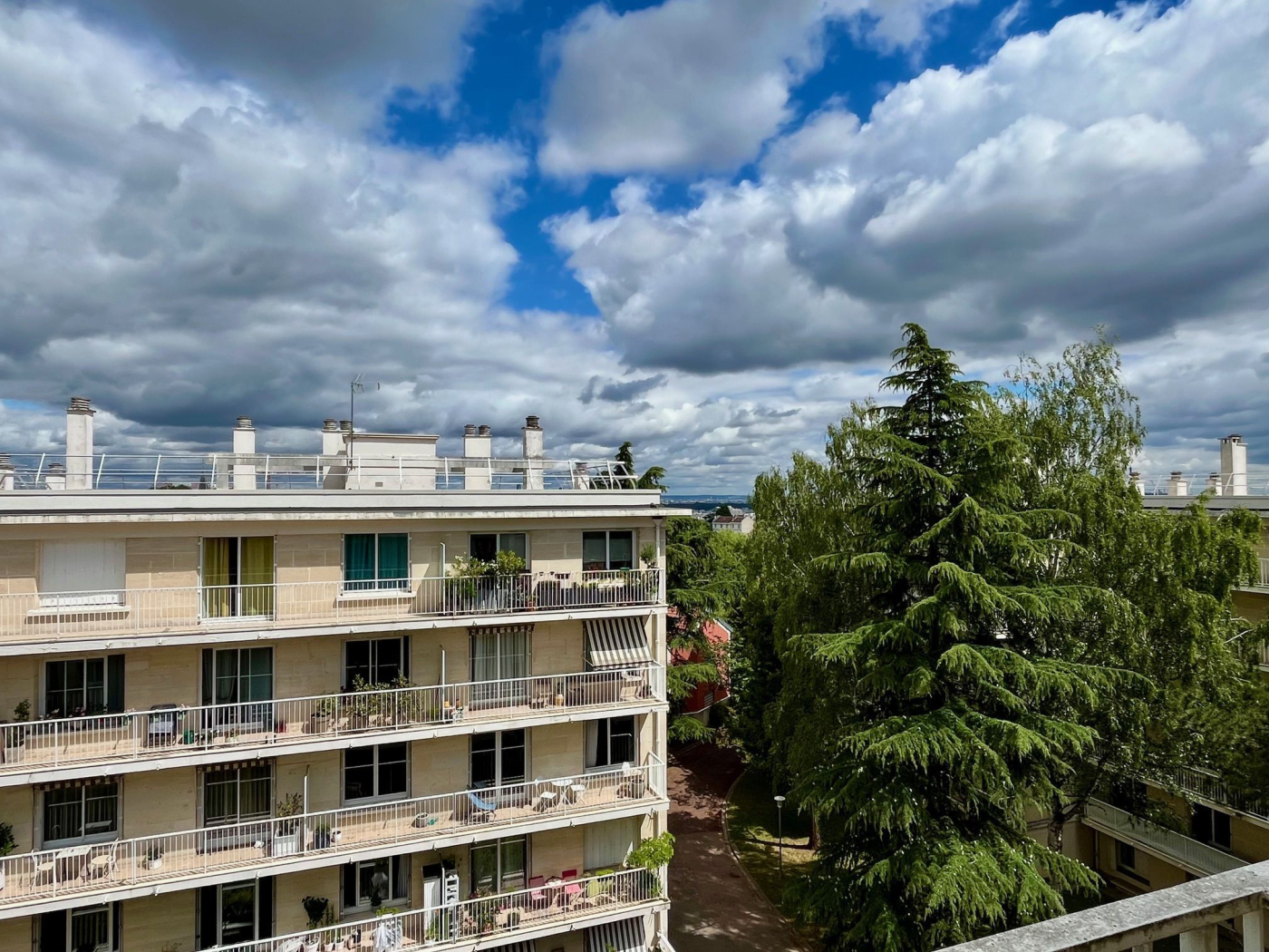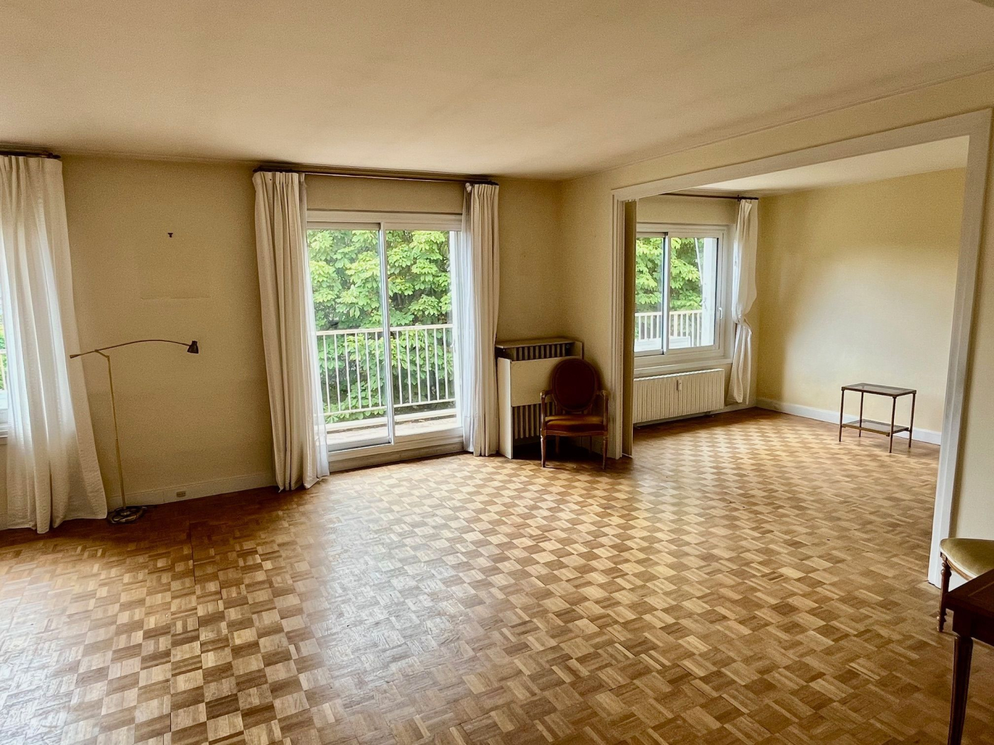 MEUDON BELLEVUE - Avenue du Château - Dans une copropriété très bien tenue, avec un cadre calme et verdoyant, au cinquième et dernier étage avec ascenseur, un appartement de trois pièces principales pour une superficie de 86m2 comprenant: entrée, séjour, deux chambres, belle cuisine dinatoire, salle de bains, wc séparés et nombreux rangements. Accès à un balcon par toutes les pièces de vie.