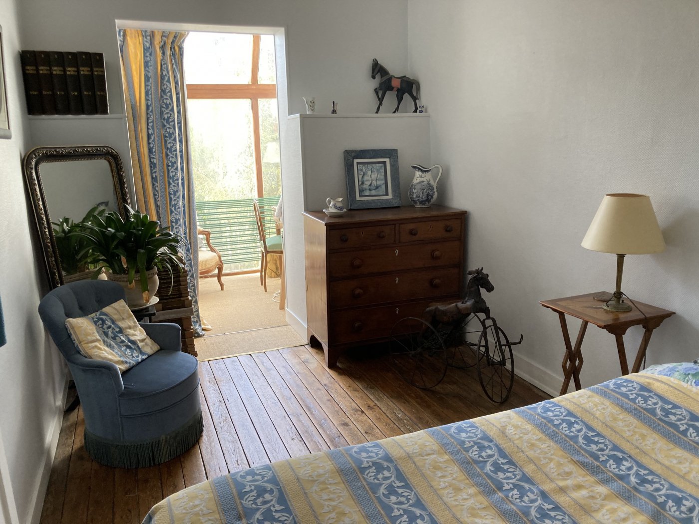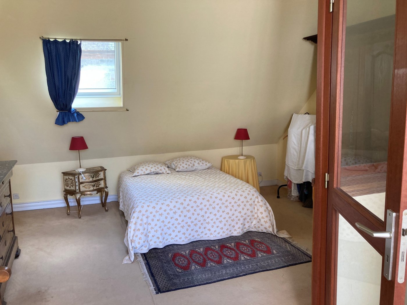 Au deuxième étage, une grande chambre sous combles avec espace bureau ? idéale pour le télétravail, un coin lecture ou une salle de jeux.