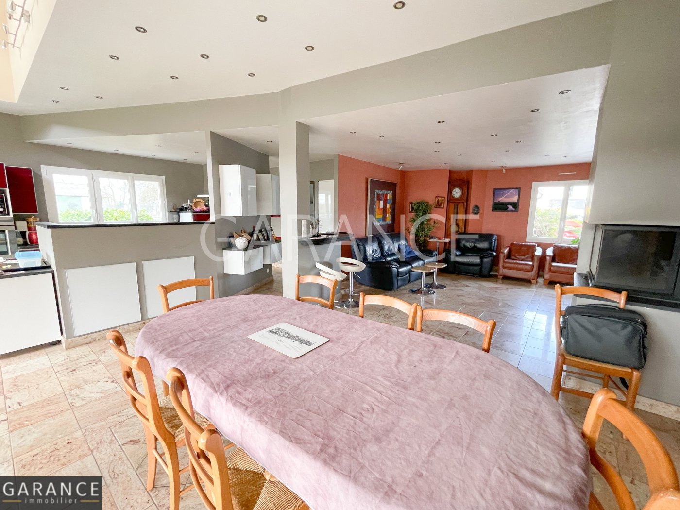 Dès l'entrée, vous serez séduits par un vaste séjour de 62 m² baigné de lumière, avec cheminée, idéal pour les moments en famille ou entre amis. La cuisine équipée, en partie ouverte sur le salon, allie modernité et convivialité. Une buanderie complète la partie vie.