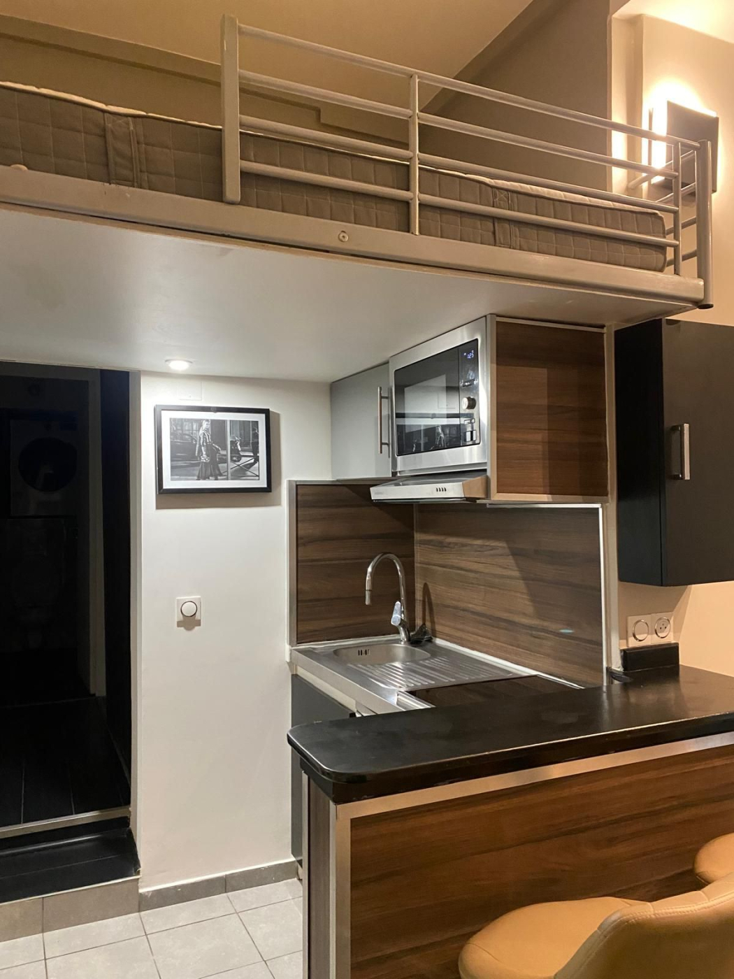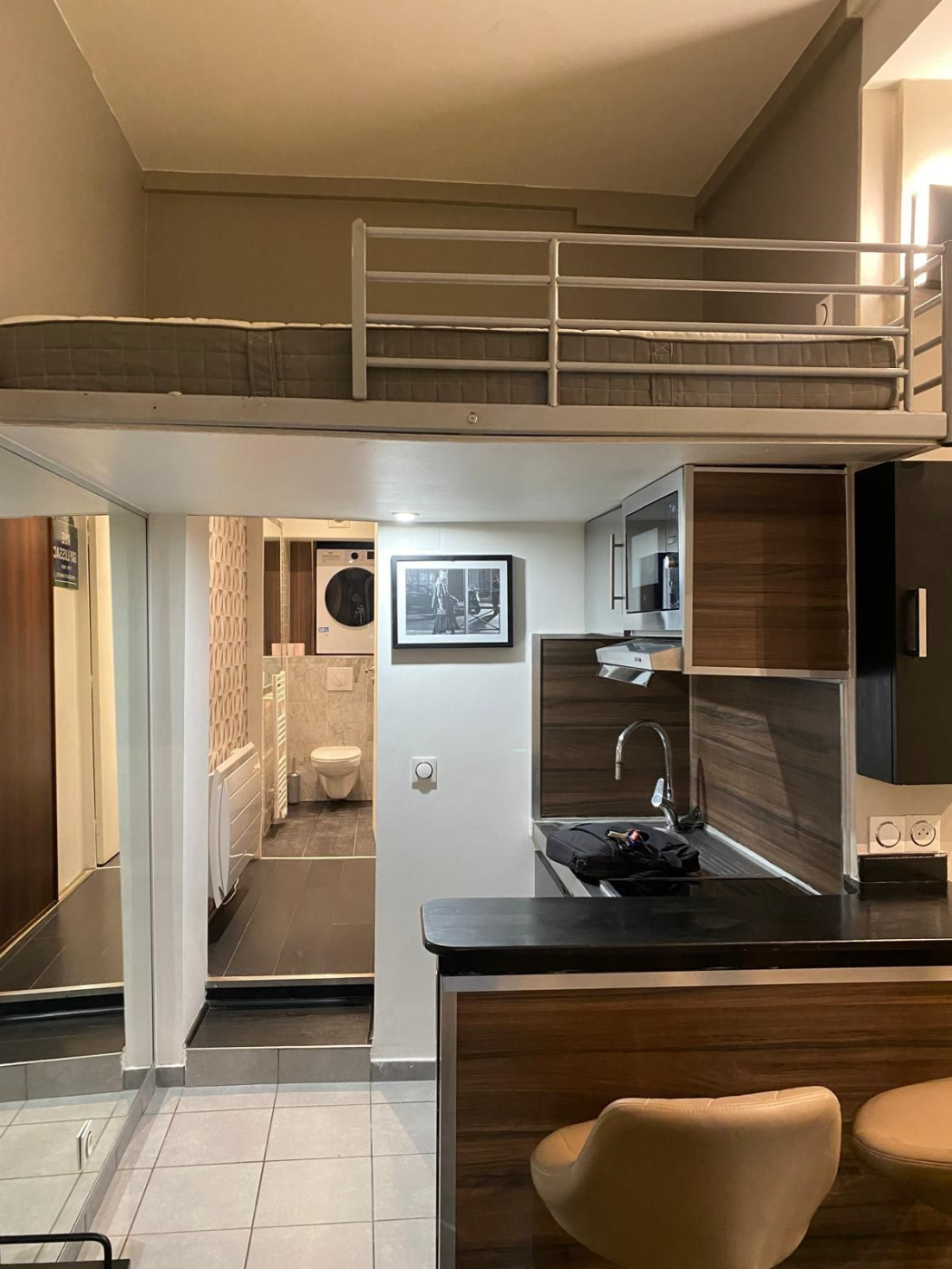 Situé au rez-de-chaussée sur cour, ce bien s'ouvre sur une pièce à vivre avec une cuisine ouverte, une mezzanine, un dégagement, une salle d'eau avec toilettes et un dressing aménagé.