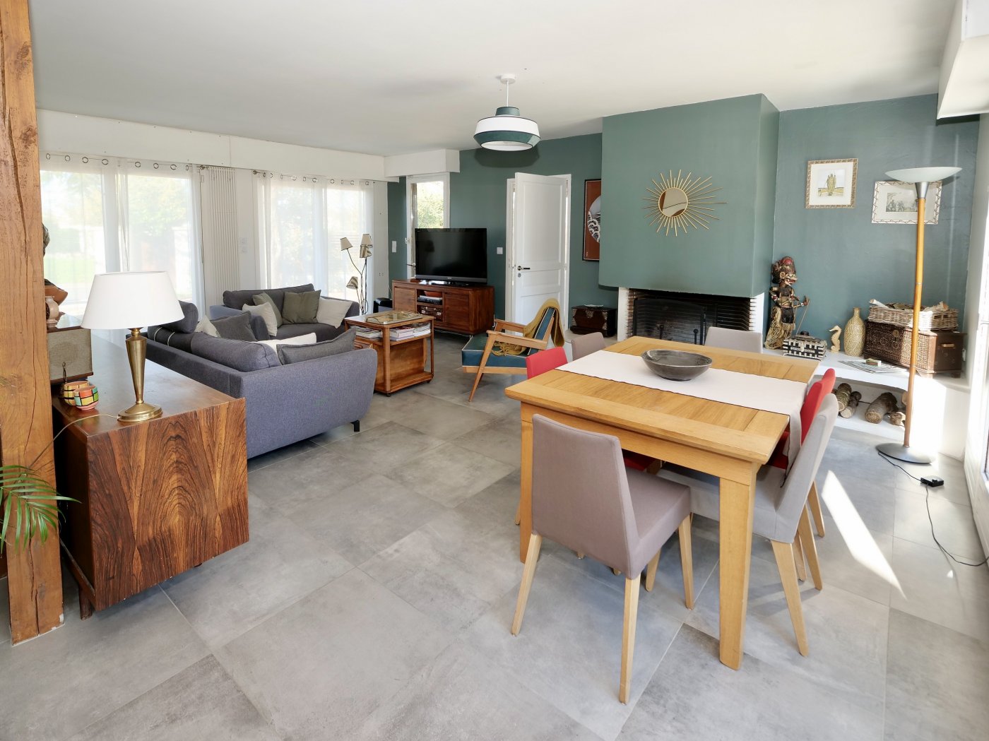 Séjour ultra-lumineux grâce à sa triple exposition, diffusant une lumière naturelle toute la journée.