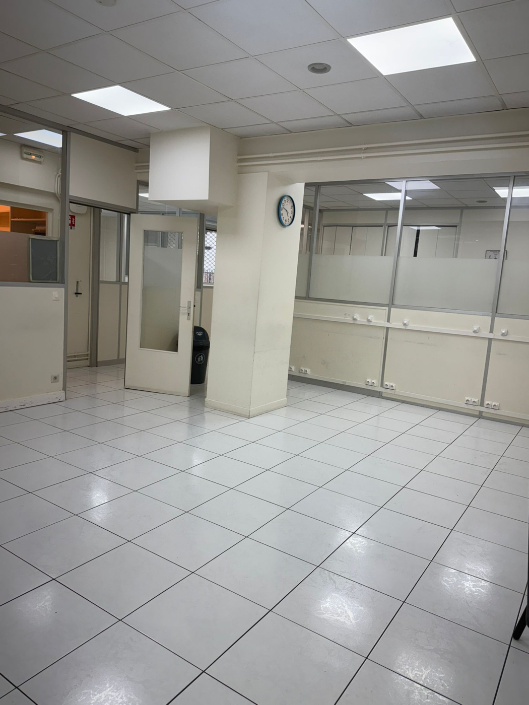 Nombreuses prises électriques et réseaux RJ45 installés dans tout le local, idéal pour un usage professionnel moderne.