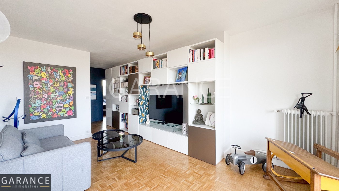 Au 5e étage avec ascenseur d'une résidence de standing sécurisée avec gardien, superbe appartement de 4 pièces principales comprenant une entrée, un salon très LUMINEUX, donnant sur BALCON, sans vis-à-vis, avec de grandes baies vitrée, une cuisine américaine équipée, trois chambres (11,65 m², 10,82 m² et 8,28 m²), toutes au calme, avec vue sur le jardin de la copropriété et la Coulée verte, une salle d'eau et WC séparés. Dressing intégré.