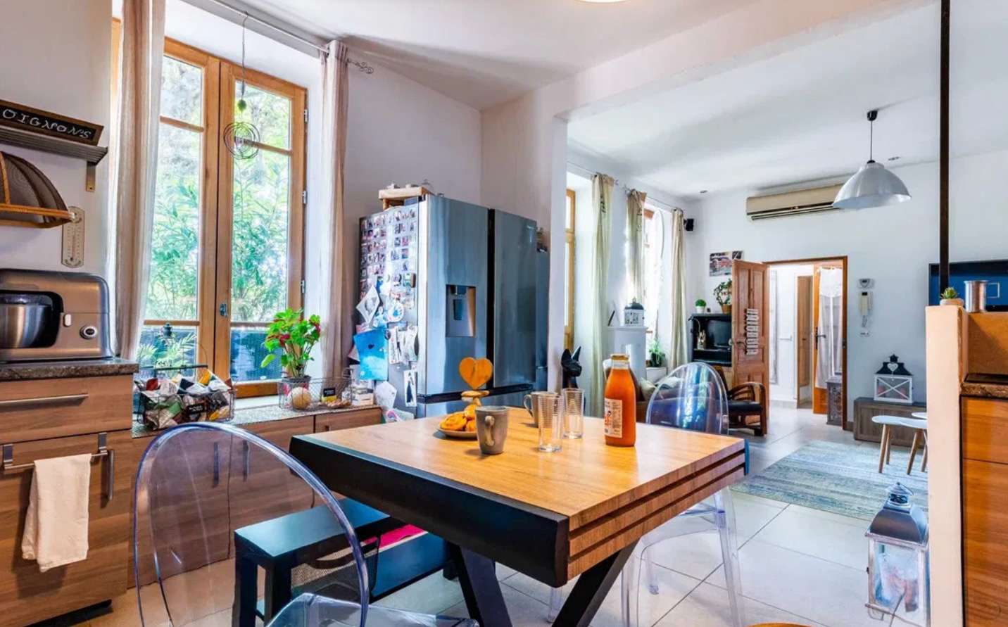 La maison se compose comme suit : - un appartement T5 établi sur deux niveau d'environ 95 m2, celui ci comprend un salon et une cuisine ouverte, un WC indépendant, une buanderie ainsi qu'une première chambre avec accès salle d'eau. A l'étage 3 grandes chambres et une salle de bain avec baignoire balnéo et un WC. - un appartement T3 d'environ 55 m2 en rez de jardin avec une pièce de vie donnant sur la cuisine, deux belles chambres, une salle d'eau et un WC. - un appartement T3 à l'étage d'environ 55 m2 également avec la même disposition que celui du rez de jardin.