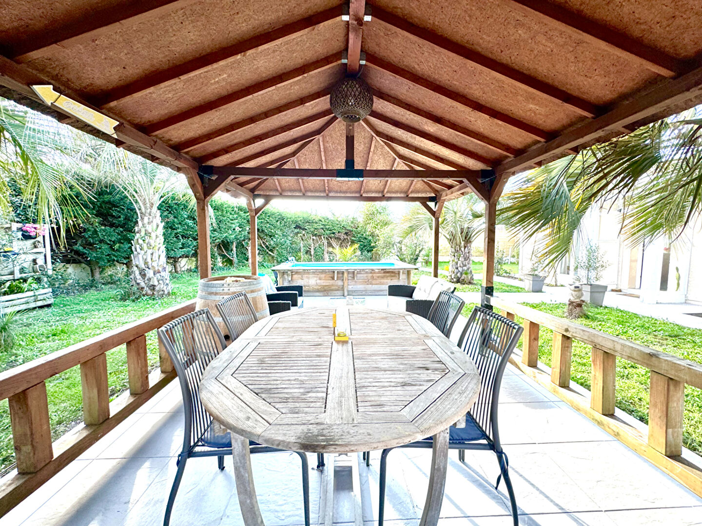 A VENDRE / A ACHETER - 33470 Gujan Mestras Maison rénovée avec dépendance récente, piscine et jardin dans un secteur calme proche de la Place de la Claire Située dans un secteur résidentiel paisible, à proximité des commodités de la Place de la Claire, votre agence ERA vous présente cette charmante maison de type 4, entièrement rénovée avec goût. Elle se compose d'une spacieuse pièce de vie lumineuse avec cuisine moderne aménagée et équipée, prolongée par un cellier fonctionnel. L'espace nuit comprend trois chambres avec rangements, une salle de bains disposant d'une baignoire et d'une douche, ainsi qu'un WC indépendant. A l'extérieur, vous serez séduit par un jardin arboré orné de magnifiques palmiers, avec un gazebo et une piscine invitant à la détente, le tout dans un écrin de verdure à l'abri des regards. En complément, une seconde maison indépendante à ossature bois d'environ 48 m² vient parfaire ce bien. De plain-pied, elle offre une pièce de vie avec cuisine équipée, un salon, deux chambres et une salle d'eau avec WC ? idéal pour recevoir la famille, héberger des invités ou générer un revenu locatif grâce à son jardin privatif. Enfin, un grand garage complète l'ensemble. Les atouts : Rénovation complète et soignée Environnement calme et recherché Piscine et jardin sans vis-à-vis Dépendance habitable indépendante Proche des commodités Bien proposé par Laure Guirriec, agent commercial (RSAC 902 305 242) Pour plus d'informations ou pour organiser une visite, contactez votre agence au 05.57.61.12.39 (4.00 % honoraires TTC à la charge de l'acquéreur.)