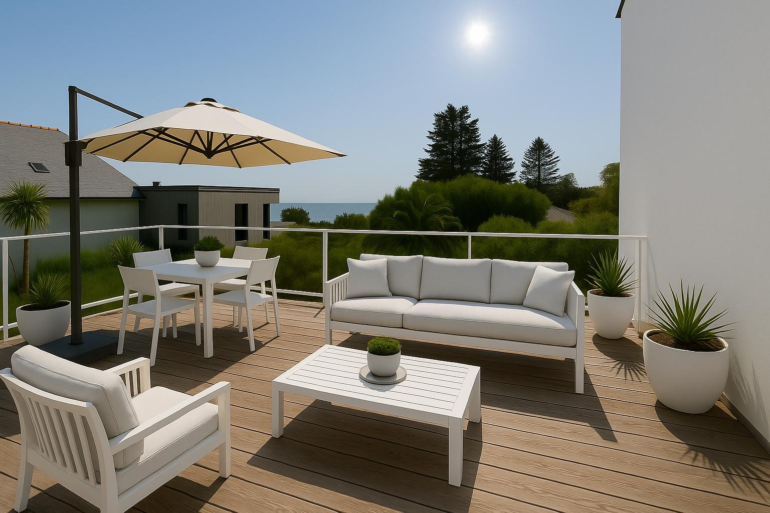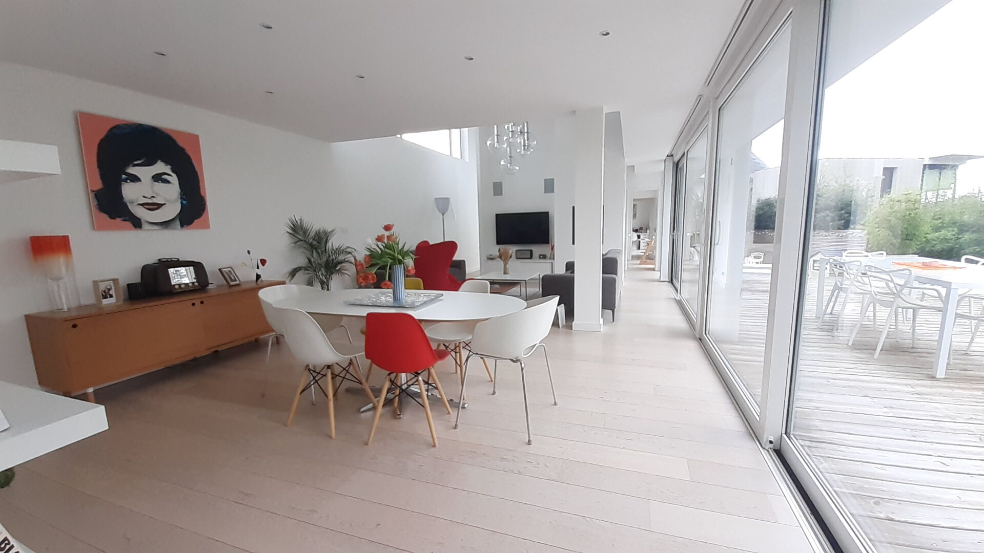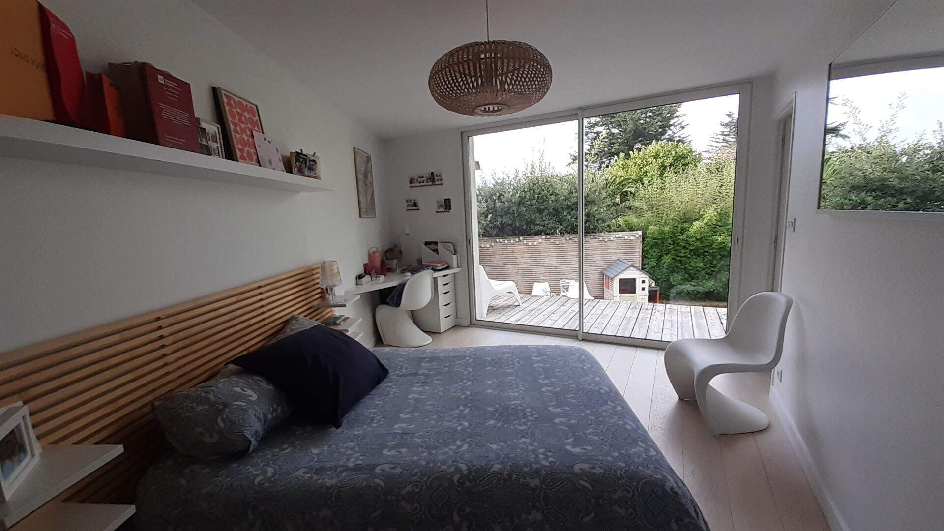 A deux pas de la plage de Sable Rouge, dans un environnement résidentiel prisé et calme, découvrez cette maison contemporaine d'architecte aux lignes épurées, conçue pour offrir lumière, confort et ouverture sur la nature. Dès l'entrée, le ton est donné : un vaste séjour baigné de lumière, agrémenté d'une cheminée, s'ouvre par de larges baies vitrées sur une grande terrasse plein sud. La cuisine aménagée et équipée, conviviale et fonctionnelle, prolonge harmonieusement l'espace de vie. Le rez-de-terrasse accueille également deux belles chambres, une salle d'eau, une arrière-cuisine et un cellier, offrant un confort de plain-pied très appréciable. A l'étage, la suite parentale profite d'un balcon privé avec vue dégagée sur la rade, d'une salle de bains privative et d'un accès à une terrasse spectaculaire avec vue mer ? un espace unique où imaginer un sky bar ou une extension panoramique selon vos envies. Cette propriété rare allie architecture contemporaine, volumes généreux et emplacement de premier ordre, à seulement quelques minutes de Brest et des commodités, dans un cadre maritime exceptionnel ! (4.42 % honoraires TTC à la charge de l'acquéreur.)