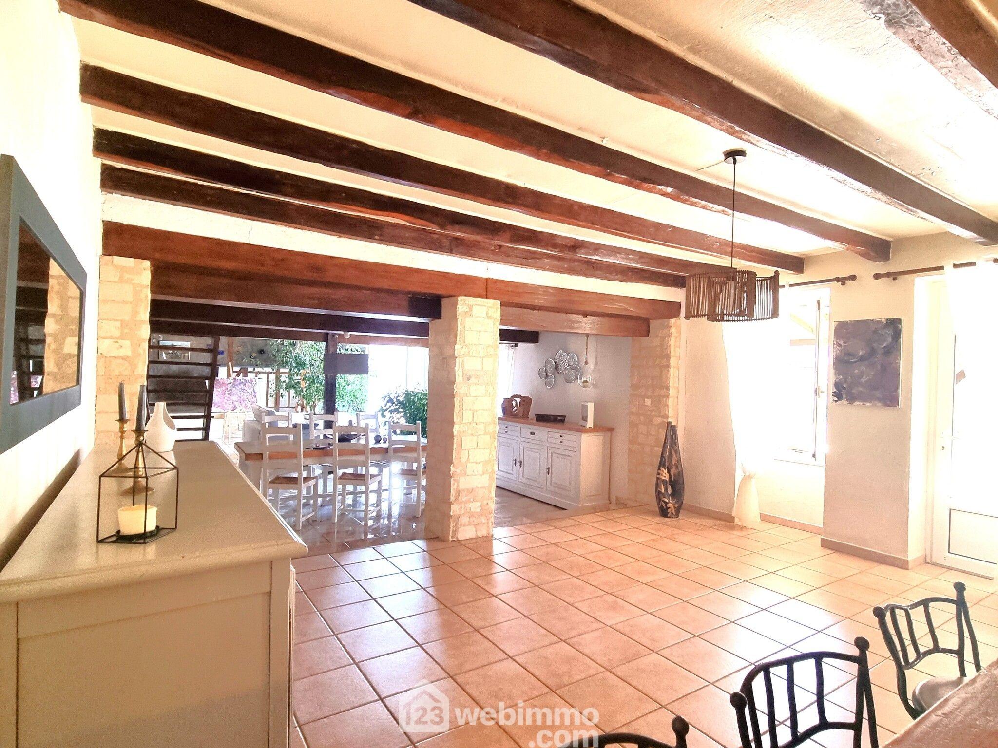 Votre agence 123webimmo l'immobilier au meilleur prix vous présente : Demeure en pierre avec vie de plain-pied, 388 m² habitables, 10 pièces, 7 chambres, garage, hangar. Terrain de 1831 m² clos, au calme.