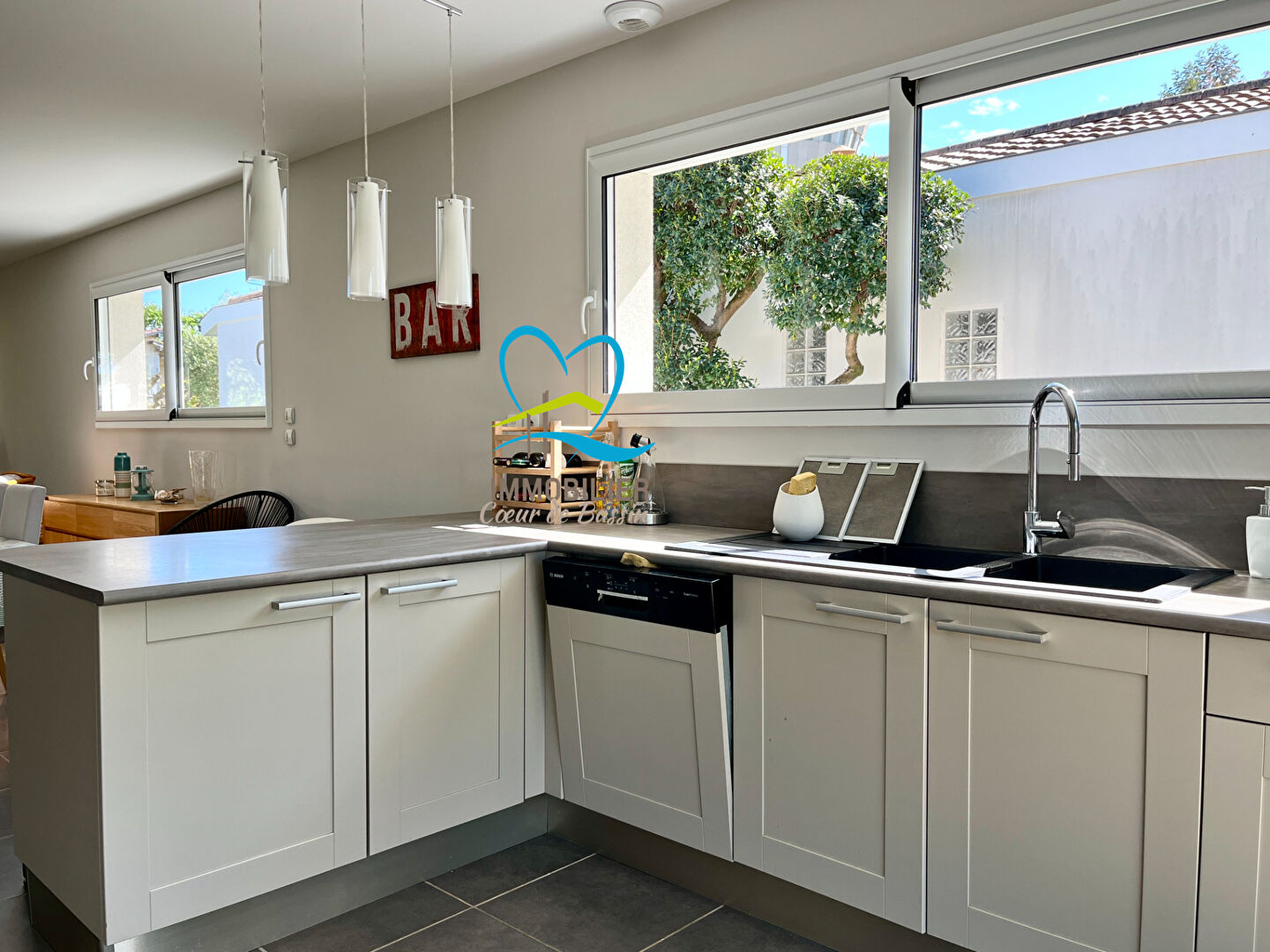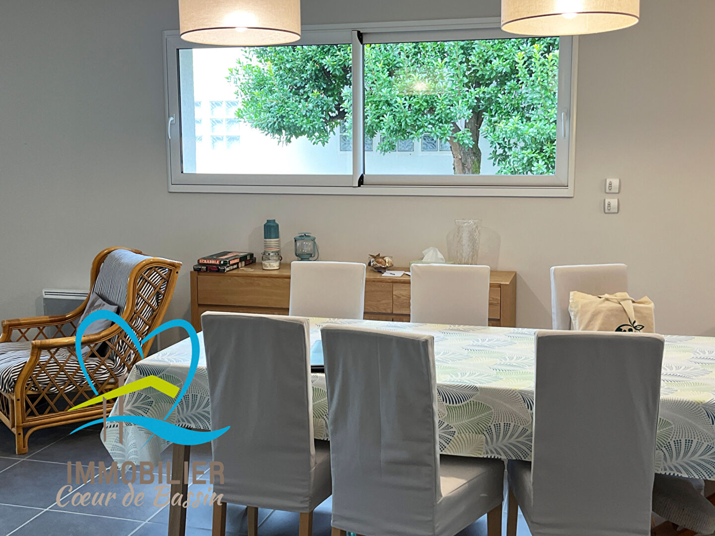 Andernos les bains, villa de 4 pièces principales : 1. Espace de vie lumineux et fonctionnel Le séjour reçoit une généreuse lumière naturelle ainsi que la cuisine ouverte grâce aux larges baies coulissantes . La vue dégagée favorise une ambiance lumineuse et agréable et un accès libre aux terrasses. L'entrée avec placard et La buanderie bien pensée sont des atouts pour l'organisation. 2. Côté nuit bien séparé et moderne Les trois chambres spacieuses avec placards intégrés offrent suffisamment d'espace pour des lits doubles La salle d'eau contemporaine et le WC suspendu ajoutent une touche de modernité. 3. Un décor intérieur clair et frais L'accent mis sur les rangements et l'ordre est un point positif si vous aimez les intérieurs épurés et bien organisés . 4. Extérieur accueillant Le jardin avec des plantations variées et les terrasses offre un cadre de vie calme, et reposant et système d'arrosage intégré permet de soigner ses plantes même en cas d'absence. Prenez rendez-vous pour visiter 05 56 26 00 94 IMMOBILIER coeur de Bassin votre intermédiaire de confiance aux honoraires légers (3.59 % honoraires TTC à la charge de l'acquéreur.) Copropriété de 2 lots - dont 2 lots habitation.