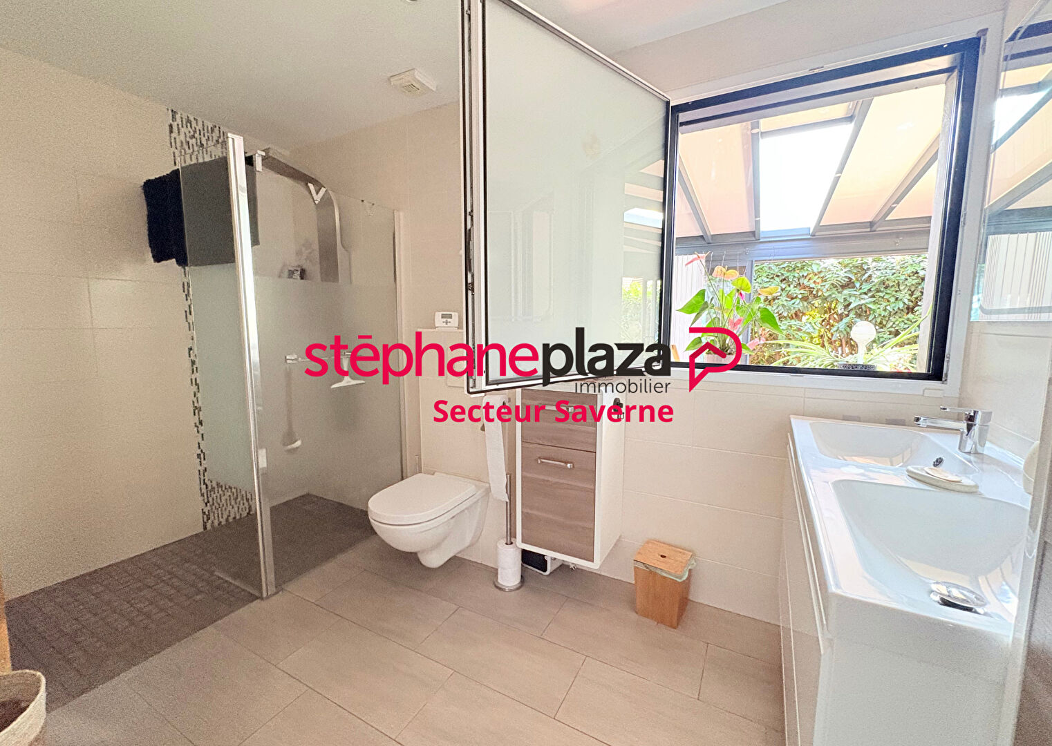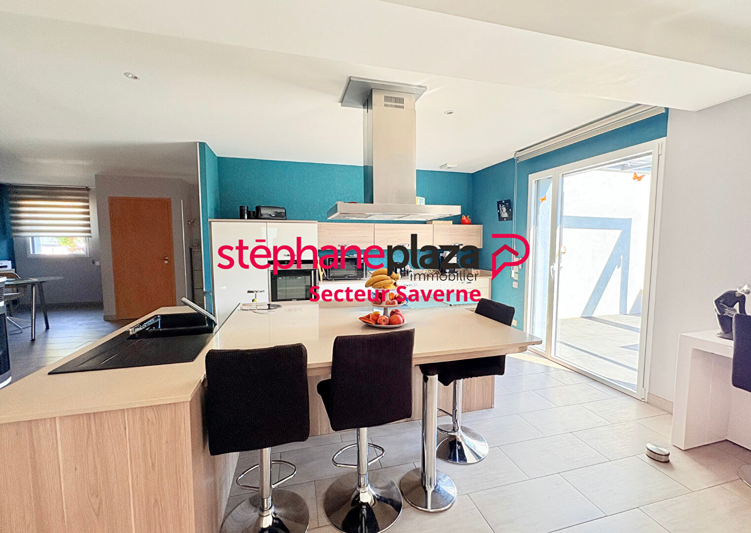 A WESTHOFFEN - Véritable plain pied construit en 2012, cette maison d'architecte tout confort est édifiée sur un terrain de 550m2 sans vis-à-vis. On y retrouve une entrée, un sas d'accueil avec rangement et accès au garage double, une pièce de vie lumineuse d'environ 50m2 avec cuisine ouverte équipée et vaste salon. Un accès à une terrasse exposée est et un accès à une véranda de 25m2 exposée ouest avec sortie vers le jardin. Également une buanderie d'environ 9m2 et un bureau ouvert sur le séjour. L'espace nuit se compose d'une suite avec dressing, salle d'eau avec WC et chambre donnant accès à la véranda et d'une seconde suite avec dressing et salle d'eau. A l'étage, 2 spacieuses chambres, une salle de bain avec WC et un vaste dégagement pouvant accueillir 2 autres chambres. Nombreux atouts: volets motorisés, poêle programmable, climatisation réversible, ballon thermodynamique, aspiration centralisée, récupérateur des eaux de pluie, faibles consommations énergétiques, proximité des commodités. (3.96 % honoraires TTC à la charge de l'acquéreur.)