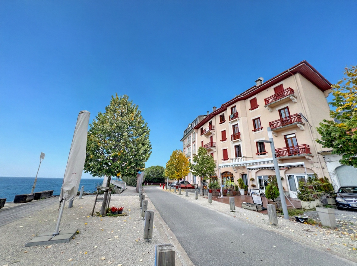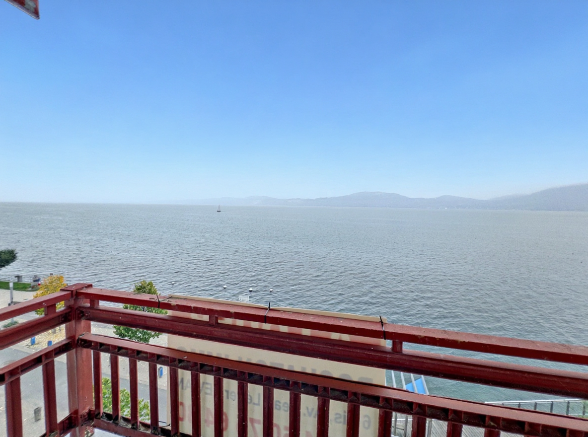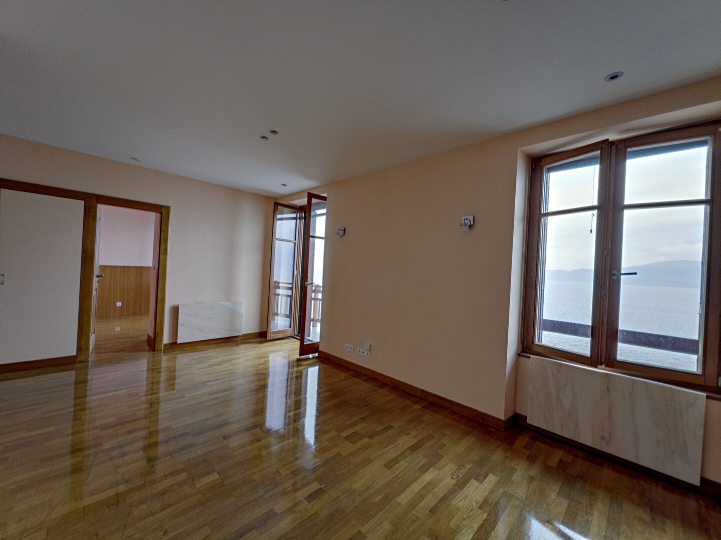 En front de lac et au calme, bel appartement traversant de type 2/3 pièces offrant un spacieux séjour lumineux avec cuisine équipée ouvrant sur balcon, une chambre avec rangements, une seconde chambre ou bureau bénéficiant également d'un balcon, une salle de bains, chauffage et une production d'eau chaude individuels électriques. Agence BOCHATON IMMOBILIER 6 bis, avenue Jean Léger à EVIAN LES BAINS Tél: 04 50 75 64 80 - candidature@bochaton-immobilier.com