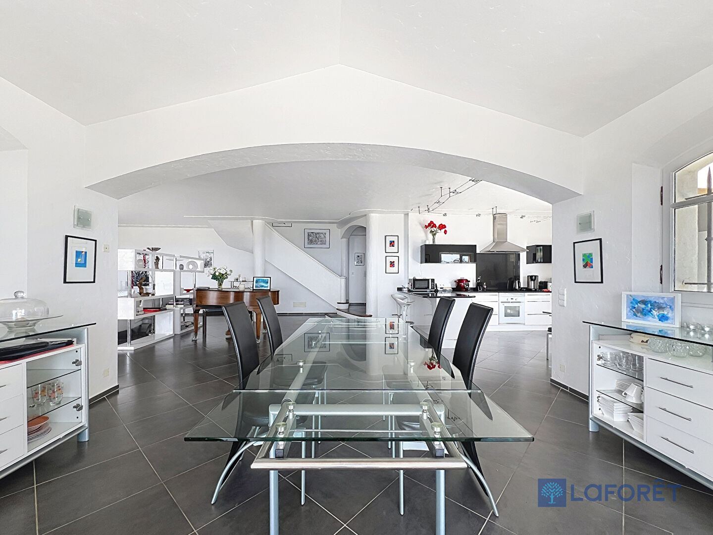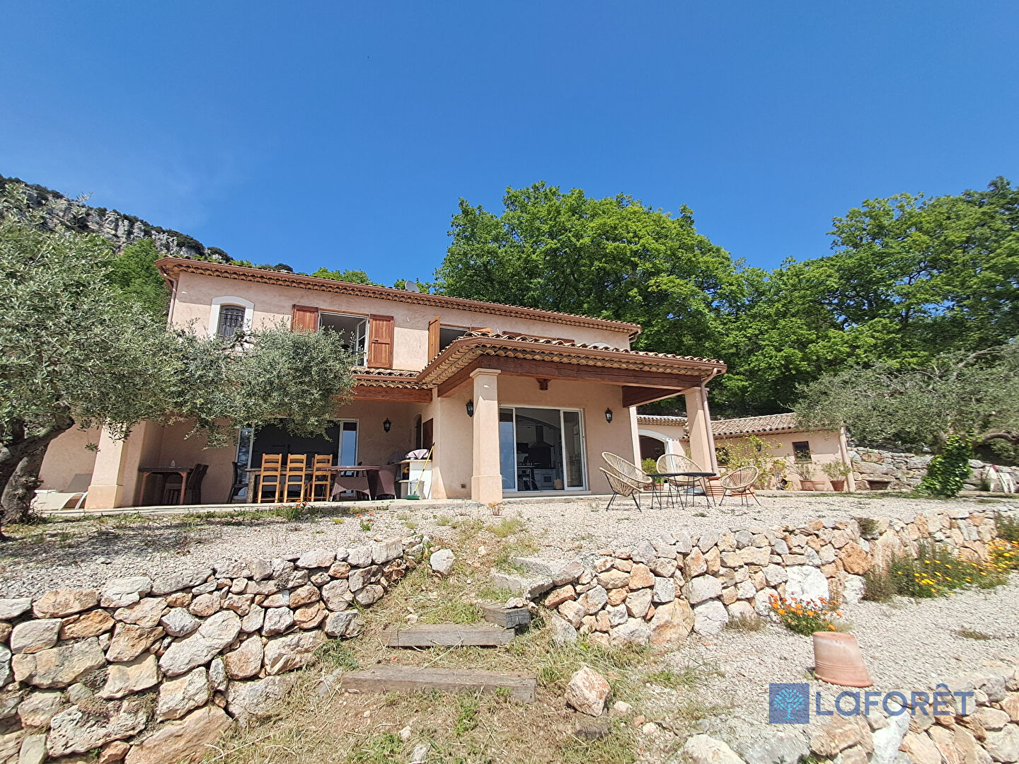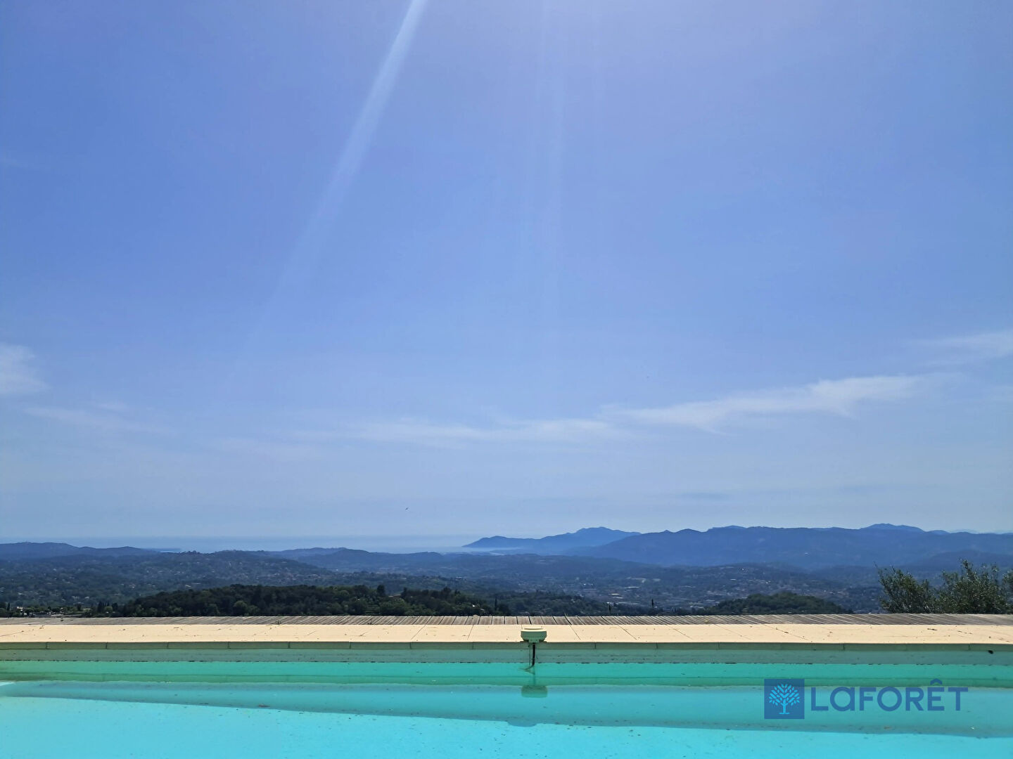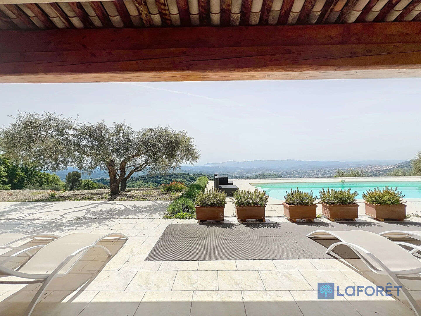 L'agence Laforêt vous propose à la vente une propriété contemporaine située à Châteauneuf-de-Grasse, dans un environnement calme et naturel, à seulement quelques minutes des commodités. Au coeur d'une oliveraie, sur un terrain de 5 700 m², cette maison d'environ 284 m² habitables offre une vue panoramique exceptionnelle sur la campagne environnante, jusqu'à la mer et les îles de Lérins. Conçue avec soin, elle bénéficie d'une construction de qualité, mêlant lignes contemporaines et éléments traditionnels, avec de beaux volumes lumineux et une intégration harmonieuse dans le paysage. Le rez-de-chaussée comprend un vaste séjour ouvert sur l'extérieur, une cuisine américaine équipée, une salle à manger, une chambre avec accès direct à la terrasse et à la piscine, ainsi qu'un bureau, une buanderie, un dressing et une salle d'eau. À l'étage, une grande suite parentale complète deux autres chambres. La maison est équipée d'un chauffage au sol, d'une climatisation réversible, d'un patio avec toit climatique, d'une terrasse utilisable en hiver grâce à une baie vitrée avec rideau, d'un grand garage et d'un vide sanitaire. Un bien rare, idéal pour ceux qui recherchent calme, confort et vues dégagées. Pour plus d'informations ou organiser une visite, contactez Vincent Schnepf au 06 70 86 13 86. (5.26 % d'honoraires TTC à la charge de l'acquéreur.).