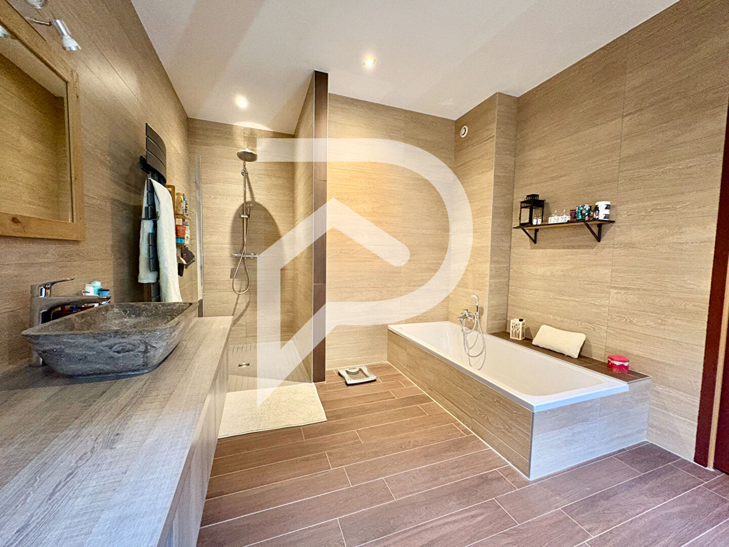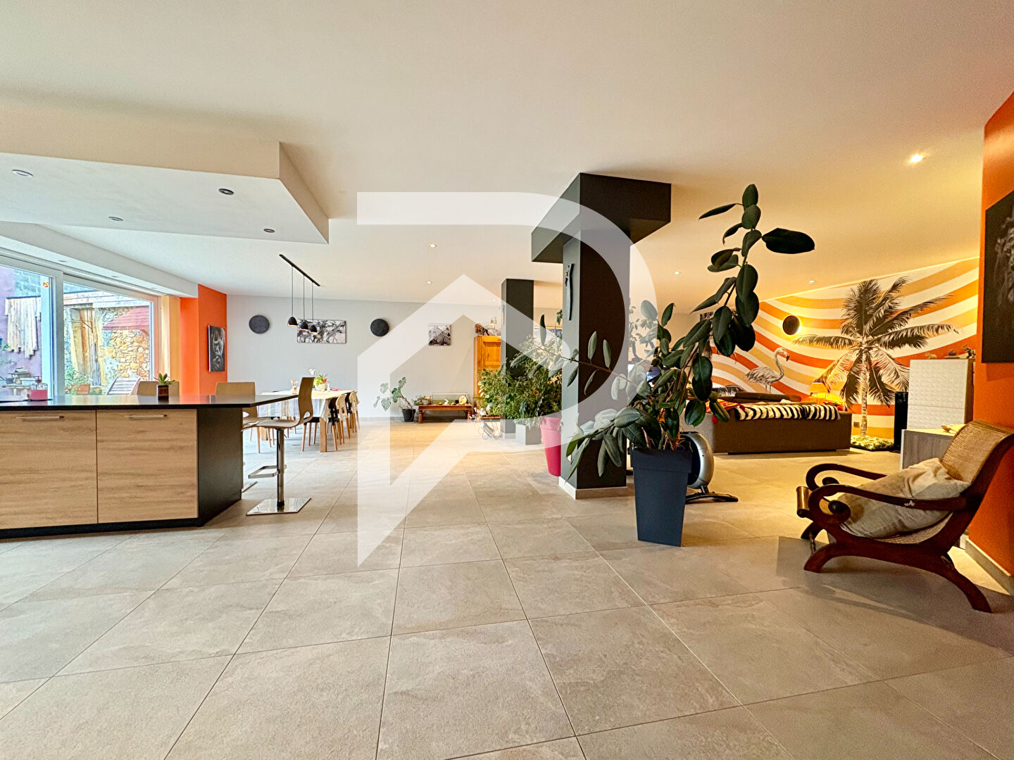 L'agence Stéphane Plaza immobilier Rouffach est heureuse de vous présenter cette superbe maison située à Gundolsheim, au calme, offrant 309 m² habitables sur un terrain d'environ 9 ares. Ancienne grange entièrement rénovée, elle se compose de sept pièces, dont un vaste salon-séjour d'environ 100 m² avec cuisine ouverte aménagée et équipée de marque Schmidt. Elle dispose de quatre chambres, dont une au rez-de-chaussée, ainsi que d'une salle de bains, de deux salles d'eau, d'un bureau, d'un espace de stockage d'environ 30 m² et de trois toilettes. De nombreux rangements complètent l'ensemble. Un garage est à disposition. A l'extérieur, une terrasse orientée au sud accueille une piscine chauffée par pompe à chaleur. Une dépendance indépendante offre deux places de parking couvertes supplémentaires, une cave et un appartement partiellement rénové, avec isolation, fenêtres, électricité et écoulement des eaux déjà réalisées. Fenêtres en PVC double vitrage. Chauffage électrique avec plancher chauffant et radiateurs à inertie fluide Ce produit rare propose de très belles prestations, pour un cadre de vie idéal, au calme. Coup de coeur assuré. N'hésitez pas à contacter l'agence Stéphane Plaza Immobilier Rouffach si vous avez besoin de plus d'informations ou si vous souhaitez organiser une visite. Matteo MAGALHAES (EI) Agent Commercial - Numéro RSAC : 924 193 844 - COLMAR.
