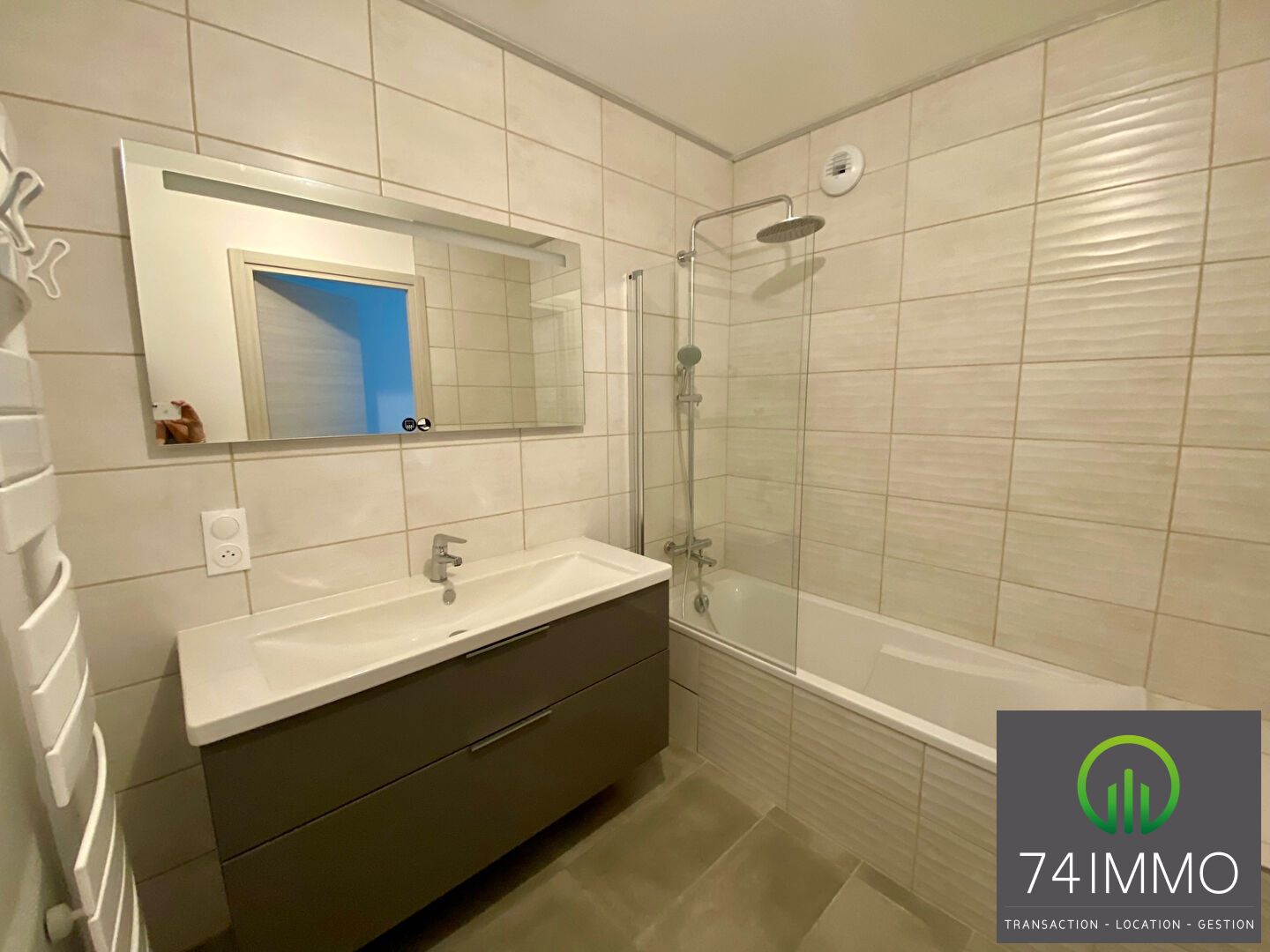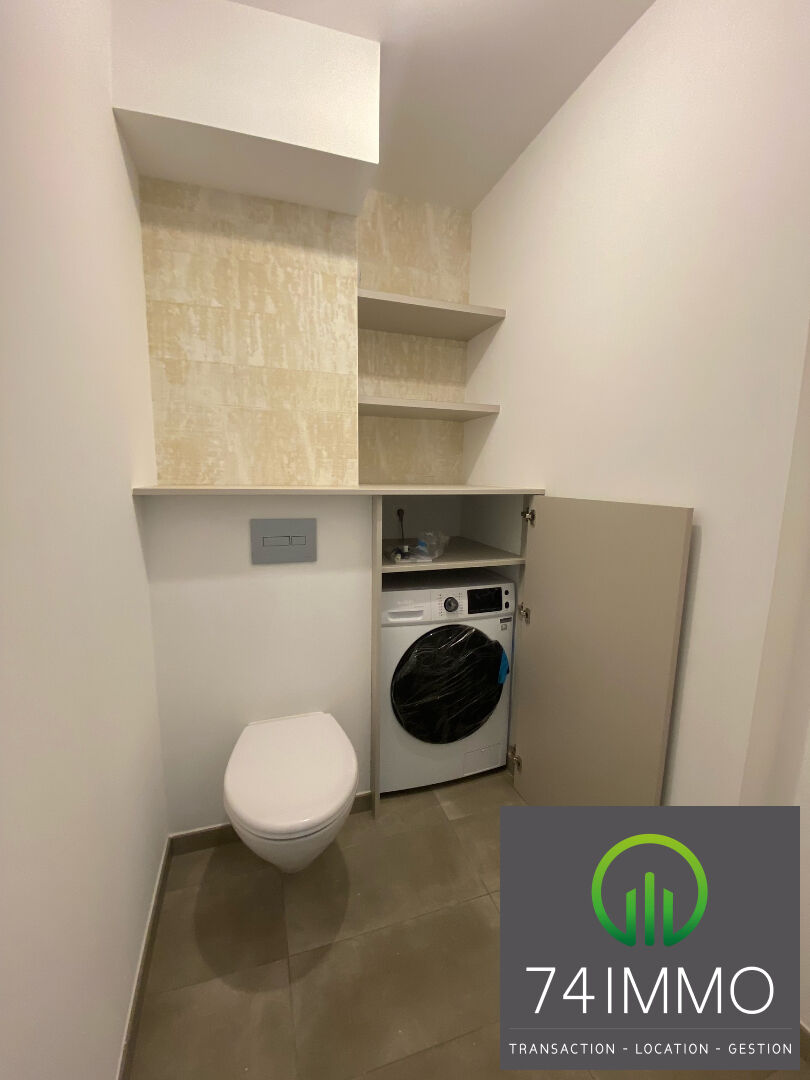 Annecy centre ville secteur les Fins Nord ; Appartement type 2 meublé de 50 m² dans une résidence neuve de 2023, la résidence dispose d'un environnement très calme tout en étant à 5 mn de l'hypercentre et à 10 mn du lac. Chauffage au gaz de ville. Accès très facile aux principaux grands axes de sortie et entrée de l'agglomération dont autoroute A41 pour Genève ou Grenoble. . Le couloir avec placard dessert 1 pièce principale de 21 m2 alliant séjour et cuisine toute équipée ouvrant sur un balcon de 5 m2 avec vue sur verdure, 1 belle chambre de 13 m2 avec parquet, lit double et placard-dressing, la salle-de-bain avec grand meuble vasque et baignoire, un vaste WC séparé avec lave-linge-séchant intégré. Avec cet appartement vous bénéficié d'un garage et d'une cave ! Loyer 1212 euros hors charges . Libre pour le 07/11/2025 pour visite ou informations supplémentaires ; Contactez le 0631463372 .