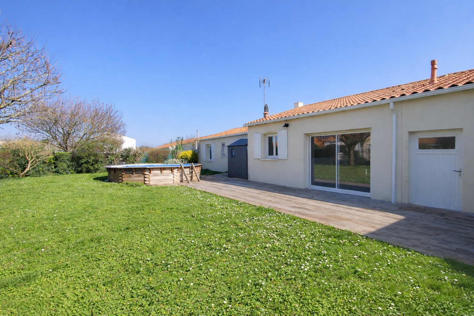 Dans un secteur calme et recherché, découvrez cette agréable maison de plain-pied d'environ 130 m², offrant un cadre de vie idéal pour une famille. Elle se compose d'une belle pièce de vie lumineuse avec salon et séjour conviviaux, ouverts sur une cuisine aménagée et équipée. La cuisine, actuellement fonctionnelle, pourra être repensée selon vos envies afin de l'adapter pleinement à votre style et à vos besoins. Une arrière-cuisine vient compléter cet espace pour plus de praticité au quotidien. L'espace nuit propose cinq chambres, dont une suite parentale, ainsi qu'une salle d'eau et un WC indépendant, assurant confort et fonctionnalité. Implantée sur un terrain clos de 615 m², la propriété bénéficie d'une terrasse ensoleillée, d'une piscine hors-sol et d'un grand garage avec galetas offrant un vaste espace de rangement. Située dans un environnement paisible, la maison profite d'un emplacement pratique avec les arrêts de bus accessibles en seulement deux minutes à pied. Les écoles, de la maternelle au collège, se trouvent à proximité immédiate, tout comme les commerces et les commodités, offrant un véritable confort de vie. Ne manquez pas cette opportunité ! (3.91 % honoraires TTC à la charge de l'acquéreur.) GUILLAUME CASTELLANOS (EI) Agent Commercial - Numéro RSAC : 888475597 - LA ROCHELLE.
