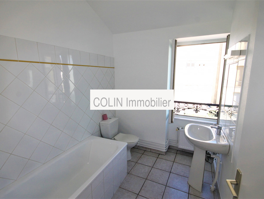 et un WC/ buanderie . Au 2ème niveau une belle chambre avec poutres apparentes et placard, et une grande salle de bain avec un 2ème WC. Chauffage individuel au gaz. Loyer 575 euros / mois. Charges de copropriété