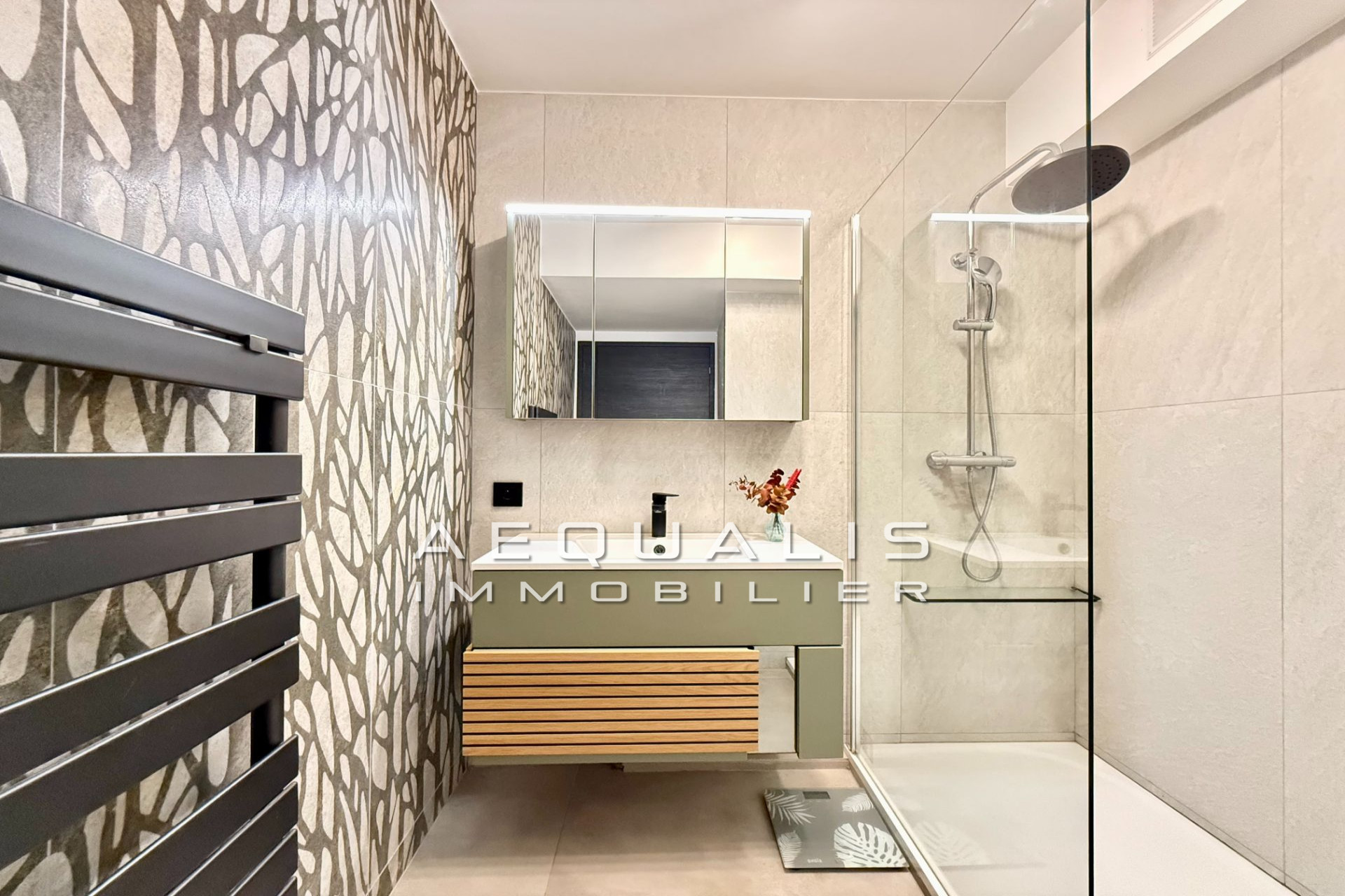 Superbe appartement de deux chambres entièrement rénové, cuisine ouverte équipée, une salle de bains avec douche italienne, séjour qui ouvre sur une belle terrasse au calme absolu avec jolie vue collines et aperçu mer.