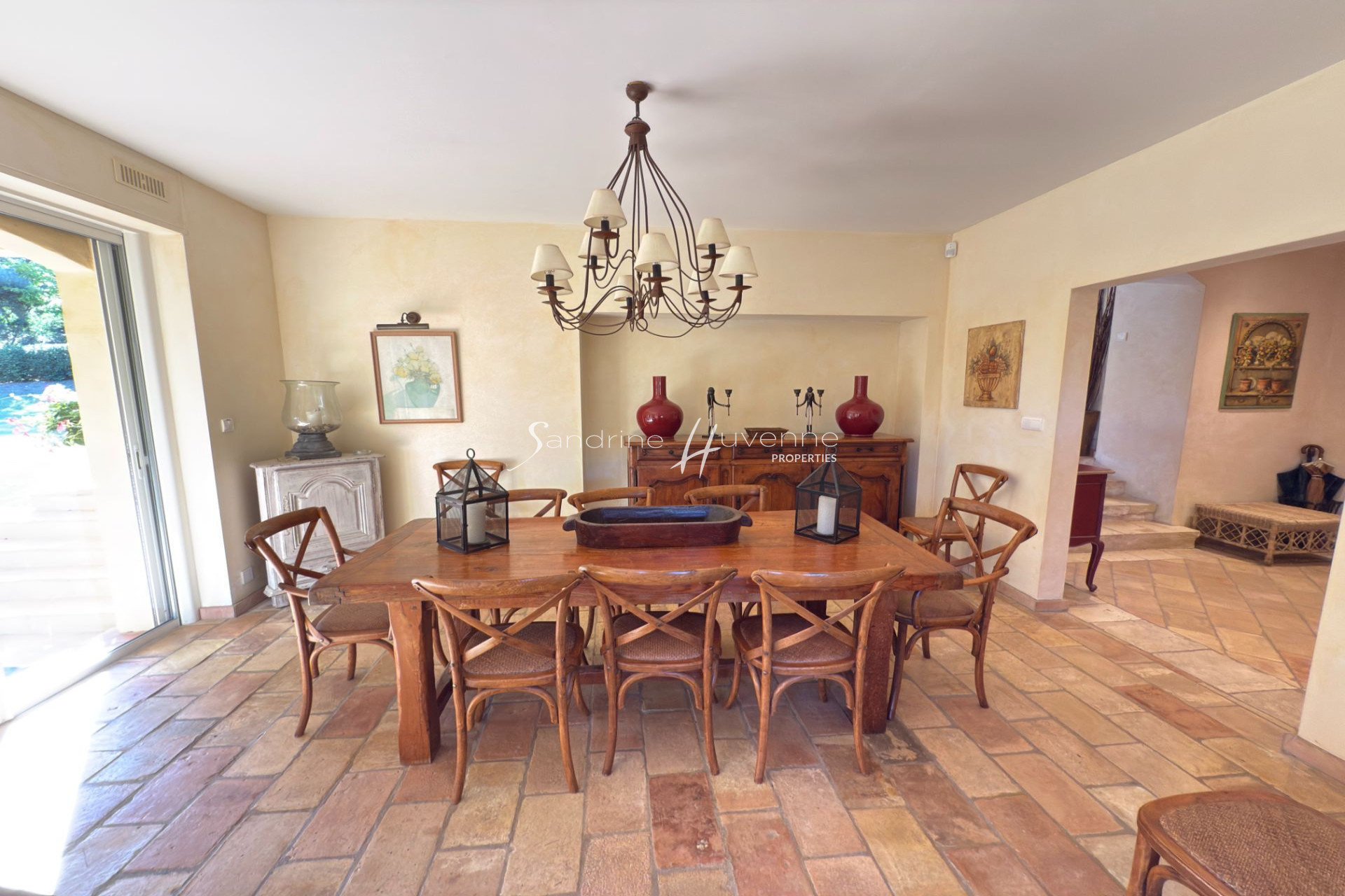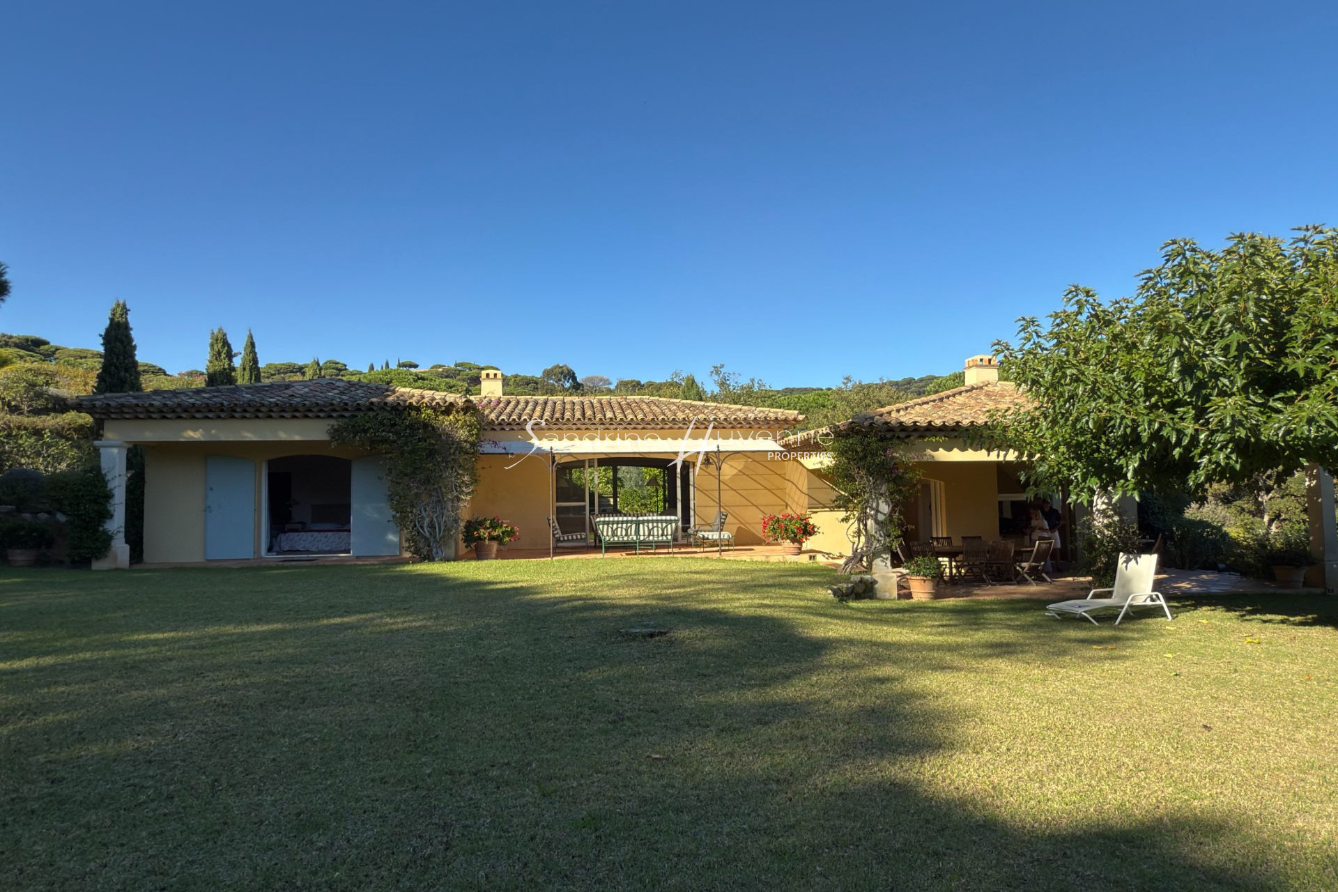 À La Croix-Valmer ? Gigaro, dans un environnement confidentiel et préservé à seulement 1,5 km de la plage, élégante villa provençale de plain-pied orientée plein Sud, offrant une vue dégagée sur les collines et un calme absolu.