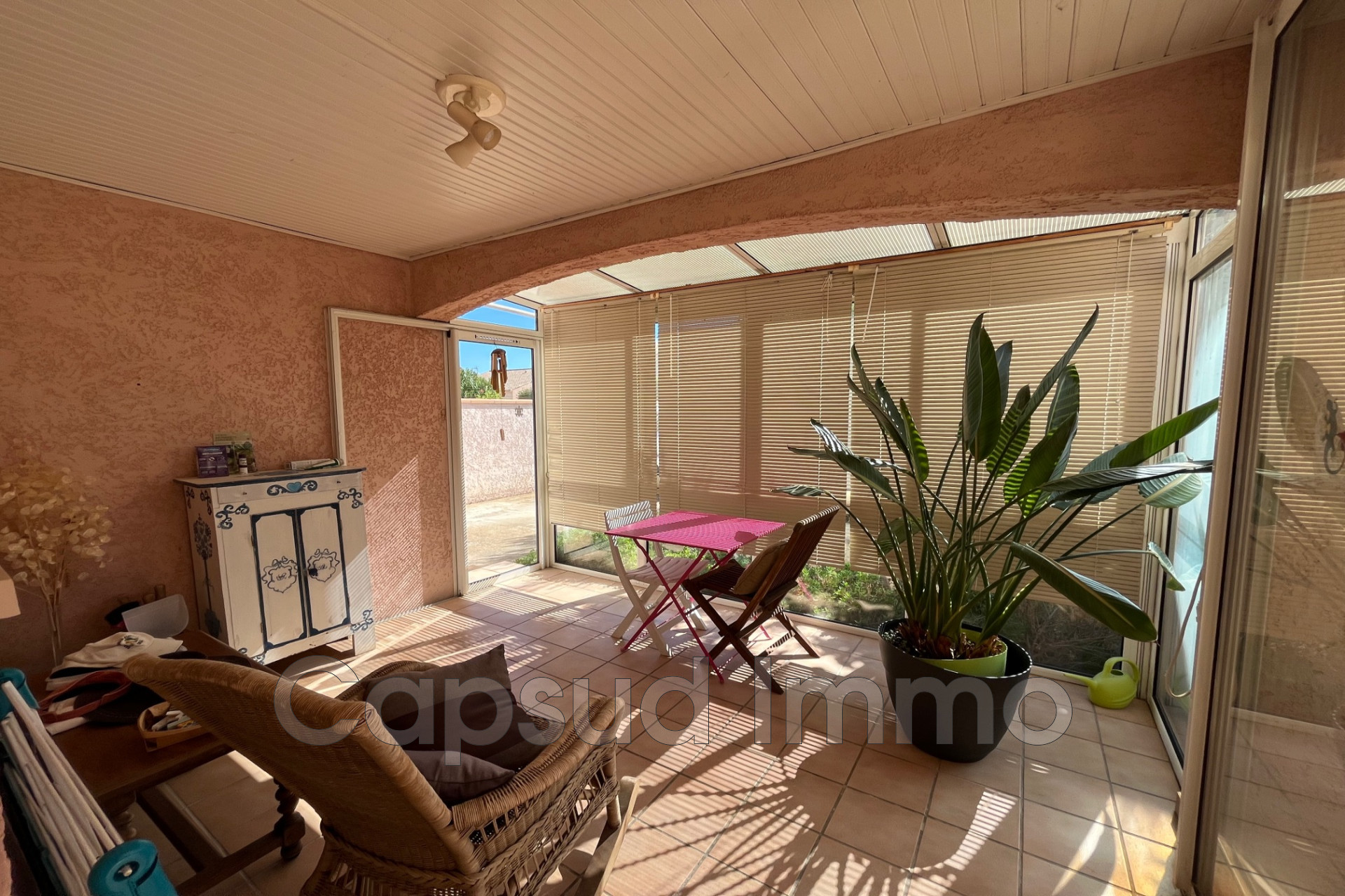De nombreux atouts comme une véranda, garage plus deux places de parking, la vie de plain-pied et le potentiel pour aménager une piscine élèvent le niveau de confort de cette maison. Profitez également d'un environnement calme grâce au double vitrage, aux volets roulants électriques et portail automatique. Chauffage par climatisation réversible et radiateurs.