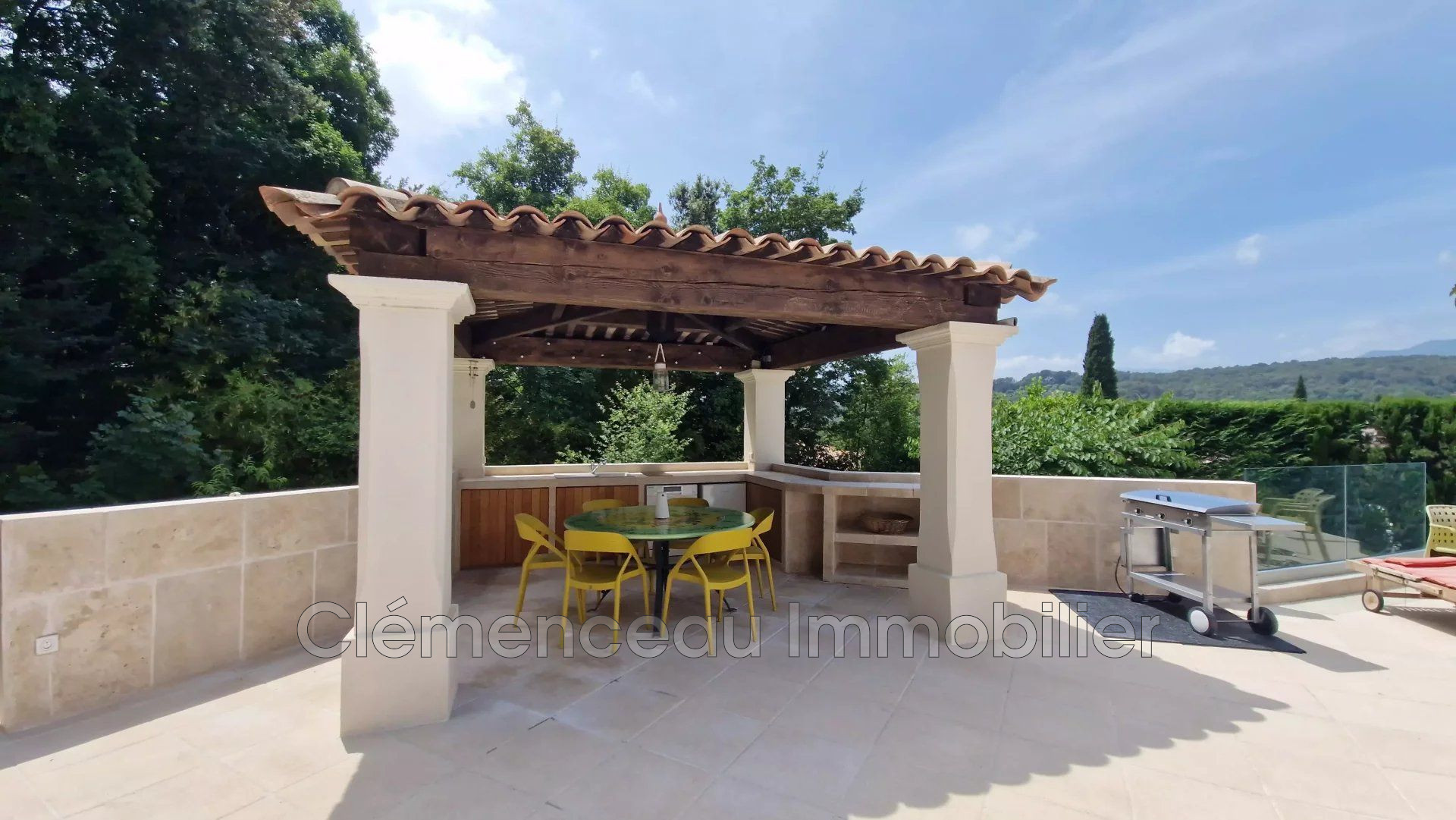 LA COLLE SUR LOUP dans un secteur résidentiel à proximité des commerces, jolie villa néo provençale d'une surface de 171 m² + 80 m² de dépendances au calme absolu sur un terrain de 1300 m² avec piscine et cuisine d'été. Elle se compose de la façon suivante d'un magnifique séjour salon avec cheminée, une cuisine semi-ouverte entièrement équipée, une belle chambre parentale avec salle de bain et wc, une deuxième chambre avec bains, une chambre d'enfant en mezzanine avec salle d'eau et wc. A l'étage une grande chambre.