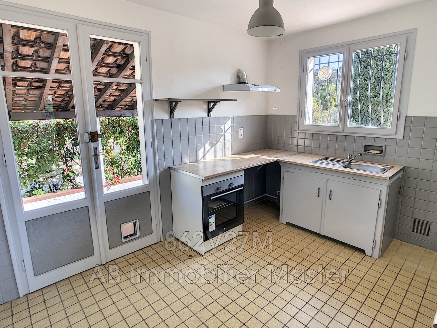Antibes quartier Fontmerle, au calme, sur un terrain de 553m², maison individuelle de 54m², sur rez-de-chaussé élevé d'un vide sanitaire, elle est composée d'une entrée avec placard, d'un séjour donnant sur terrasse, d'une cuisine indépendante donnant sur deuxième terrasse couverte, d'une chambre avec placard, d'un cellier, d'une salle de bains et de toilettes indépendantes.