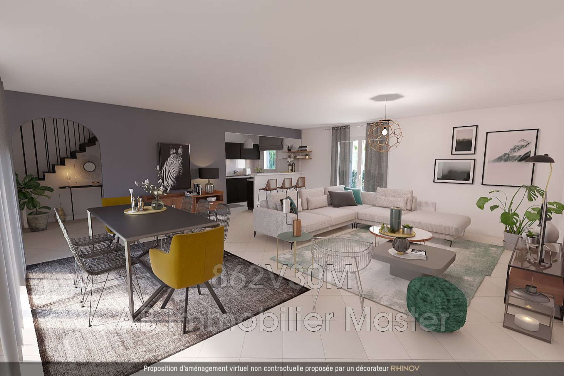 Au RDC : d'un hall d'entrée, d'un vaste séjour avec cuisine