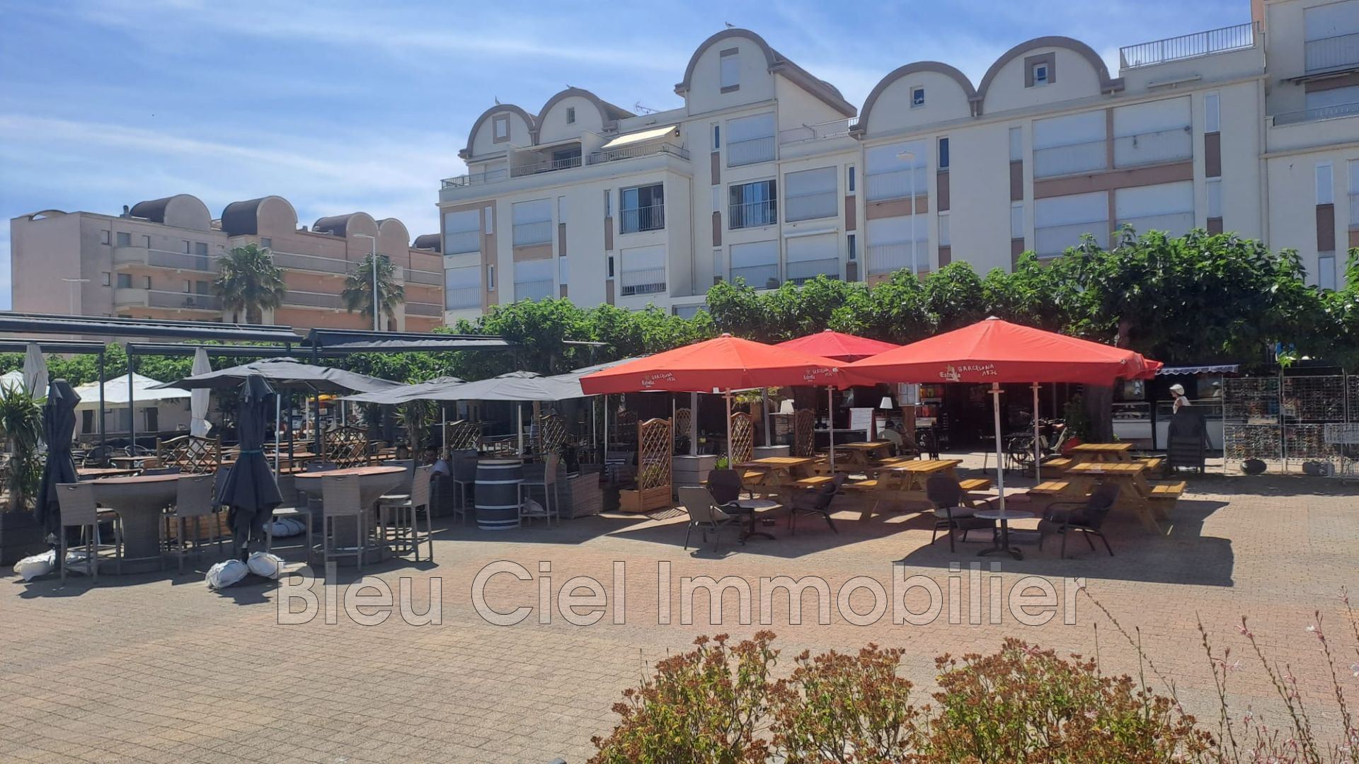 en plein coeur du quartier commercial du Grazel avec accès direct a la plage et vue directe sur l eau !