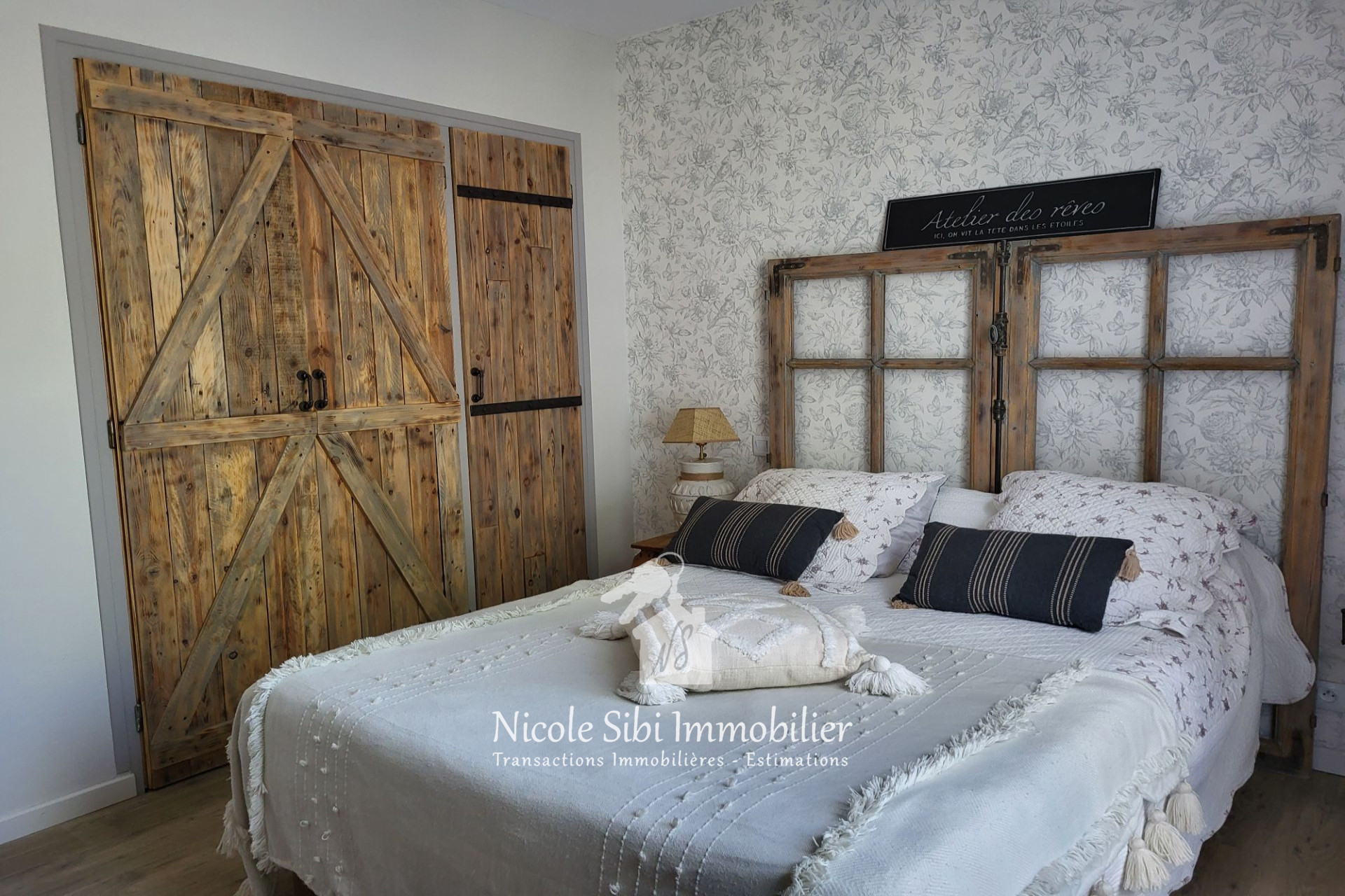 Elle offre de beaux volumes et un confort moderne dans une ambiance campagne : 5 chambres dont une de plain-pied, un séjour lumineux avec cheminée et climatisation réversible, une cuisine indépendante entièrement équipée, double vitrage, buanderie grand garage et portail automatique.