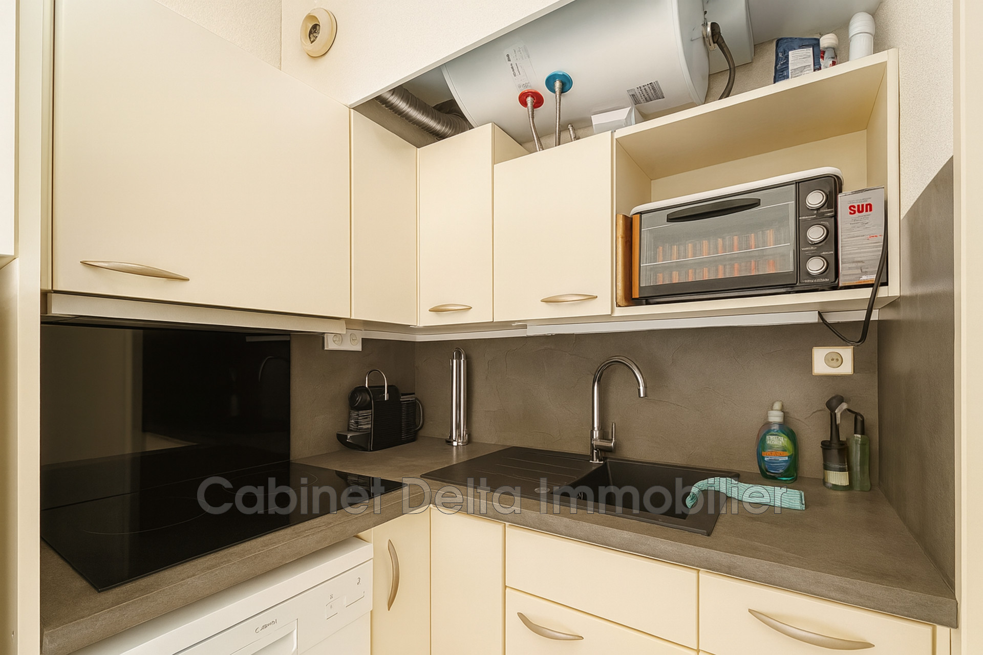 Dans une résidence avec piscine - Cet appartement studio sera parfait pour votre pied à terre entre SANARY et BANDOL, à deux pas de la plage. Vous aurez une terrasse, un appartement climatisé avec séjour, cuisine, coin nuit, salle d'eau et wc et un emplacement de stationnement privé. La plage est à 5 minutes à pied !