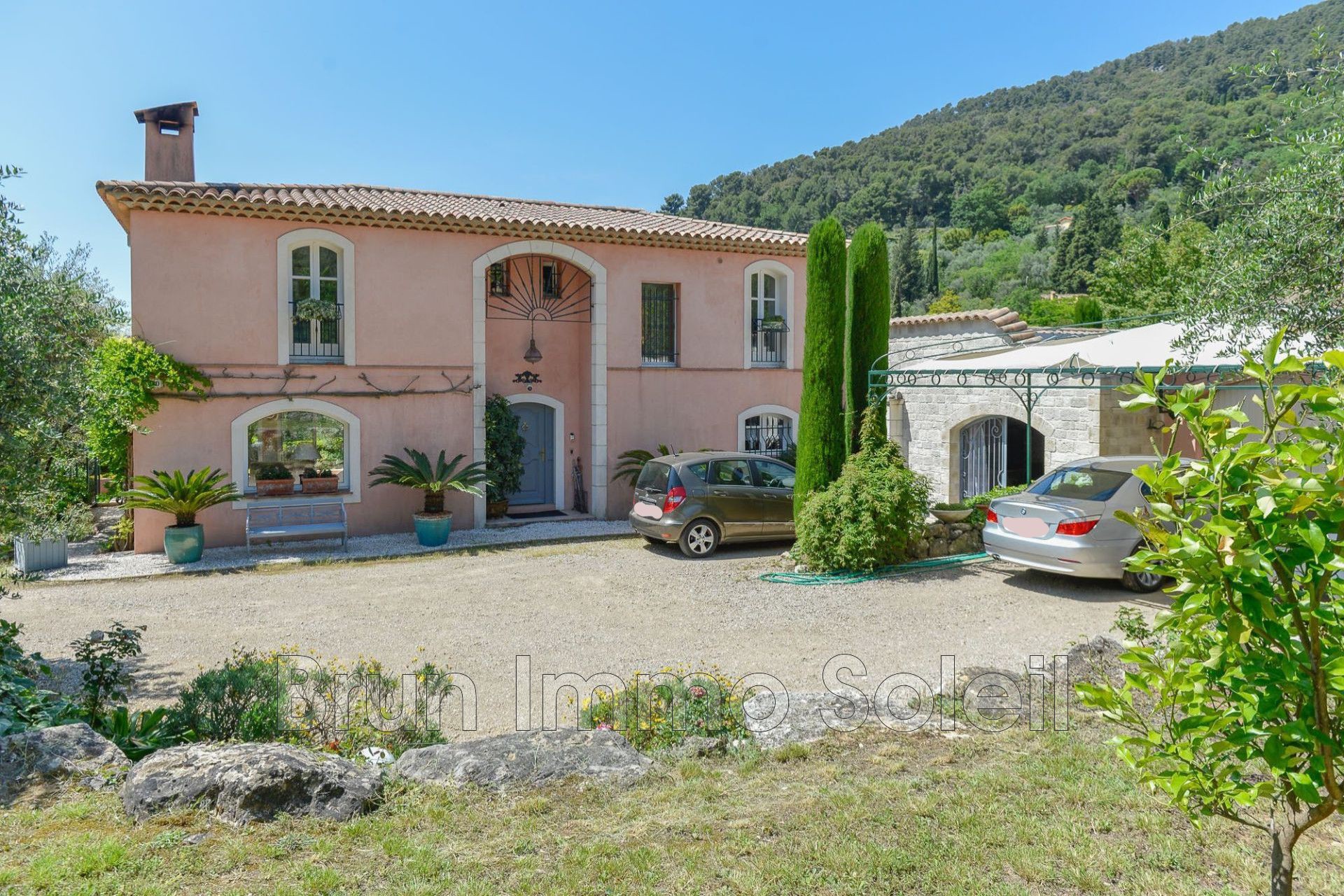 Une magnifique maison individuelle de 253 m² avec une maison de gardien de 69 m², sise dans un quartier résidentiel de la charmante ville de Grasse, est à la vente. Construite en 1991 et admirablement bien entretenue, cette habitation fait face à un merveilleux panorama sur la campagne environnante, orientée au Sud-Ouest. D'un excellent standing, ce bien d'exception s'accompagne d'un vaste terrain plat de 5 400 m² complanté d'oliviers, d'un lumineux séjour de 61 m² et d'une cuisine Américaine aménagée. Il dispose de 4 chambres, 2 salles de bain, 2 salles de douche et 5 toilettes. Les atouts de cette demeure sont nombreux : piscine, cheminée, chambre de plain-pied, double vitrage, arrosage automatique, buanderie, portail automatique qui garantissent un confort optimal. Pour compléter cet ensemble, 3 terrasses, 7 parkings et une cave de 100 m² sont disponibles.