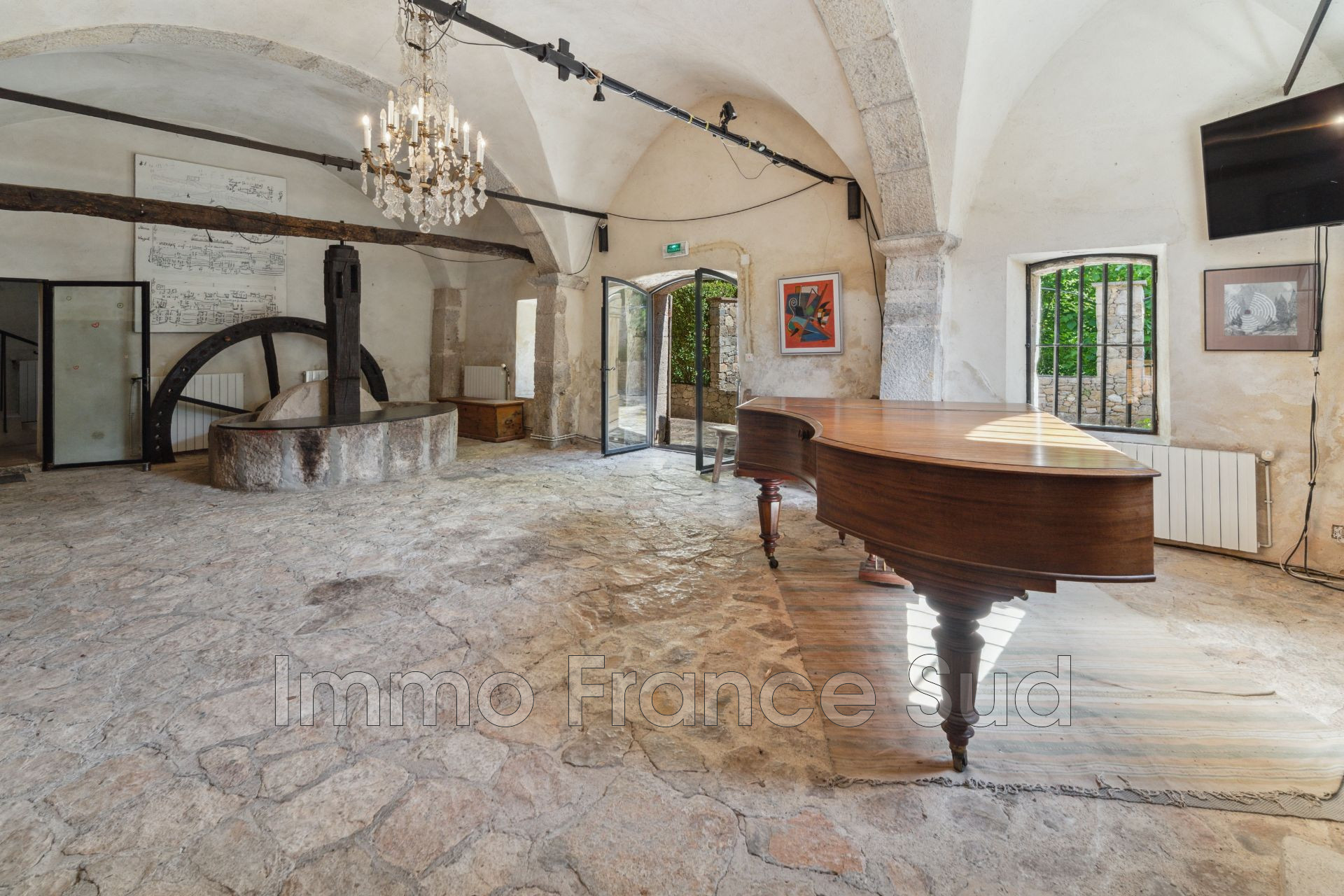 Particularité rare, les deux anciens moulins à huile d'origine, d'environ 57 m² chacun, encadrent le niveau inférieur. L'un a été transformé avec goût en espace de réception singulier, l'autre sert actuellement de réserve. Les propriétaires actuels y organisent régulièrement des concerts de musique classique, accueillant jusqu'à 85 invités. Doté d'une entrée indépendante, ce lieu atypique offre un fort potentiel : galerie d'art, atelier, salle de réception ou encore restaurant intimiste. À l'extérieur, un chemin privé mène à un jardin en restanque de 560 m², qui descend doucement jusqu'aux rives de la Bresque, avec un accès direct à la rivière. Un cadre naturel enchanteur et un terrain de pétanque complète ce tableau typiquement provençal.