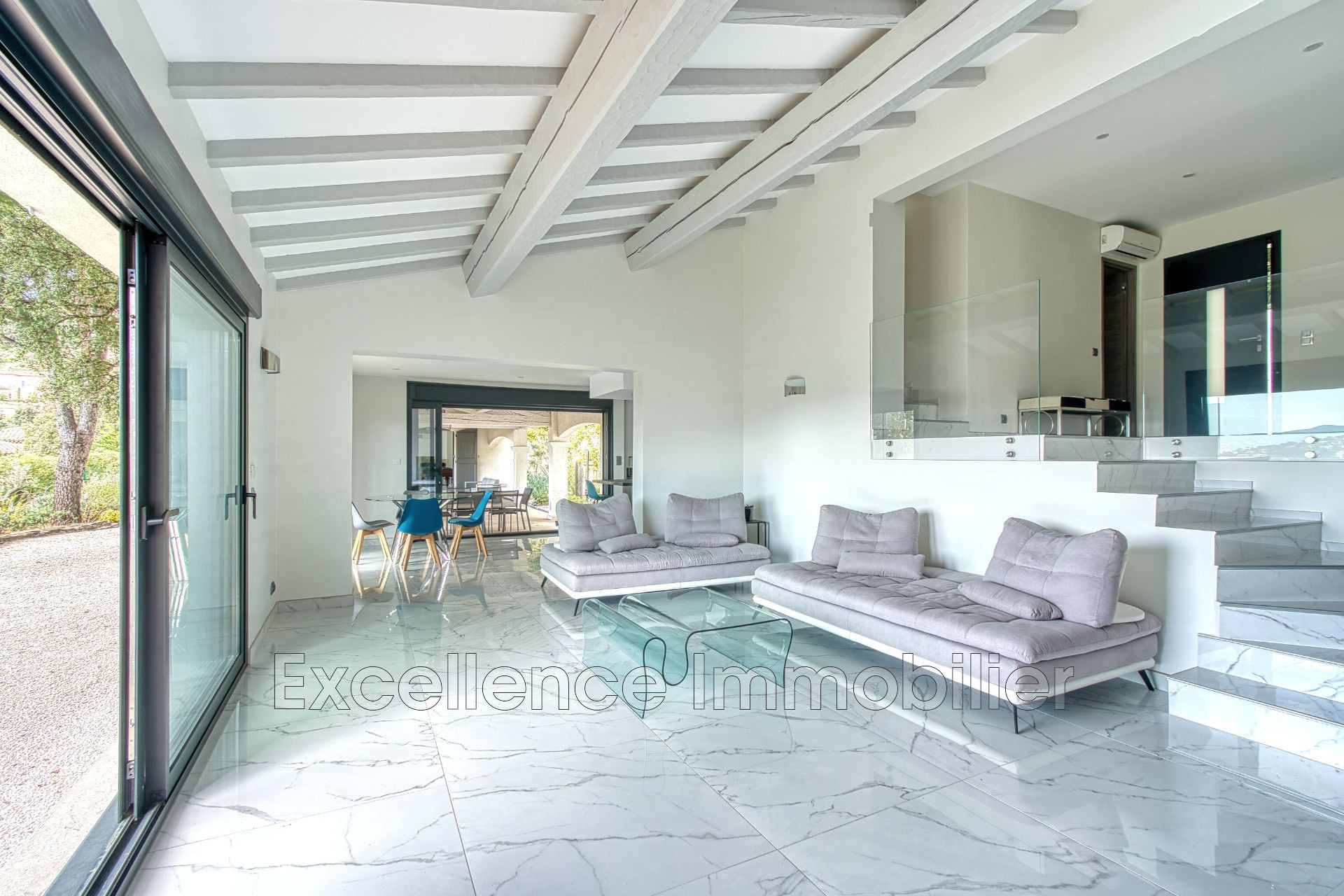 A vendre magnifique propriété avec piscine à débordement et vue panoramique sur le green et la mer à Sainte Maxime. Scindée en 2 habitations séparées par un patio, la 1ère partie se compose d'une entrée donnant sur un salon, salle à manger, une cuisine avec cellier et 3 chambres en suite avec dressing, salle de bain ou douche dont 2 avec terrasse privative. La 2ème partie se compose d'un vaste séjour ou salle de jeux, une master-room, une grande salle bain et douche et un bureau. Toutes les pièces de la propriété sont dans des teintes naturelles et très lumineuses, décorées avec goût dans des matériaux haut de gamme. A l'extérieur une piscine à débordement chauffée au milieu d'un jardin paysagé profite de la vue panoramique sur la nature environnante. Un vaste garage et un parking complètent les prestations de ce bien d'exception original et authentique.