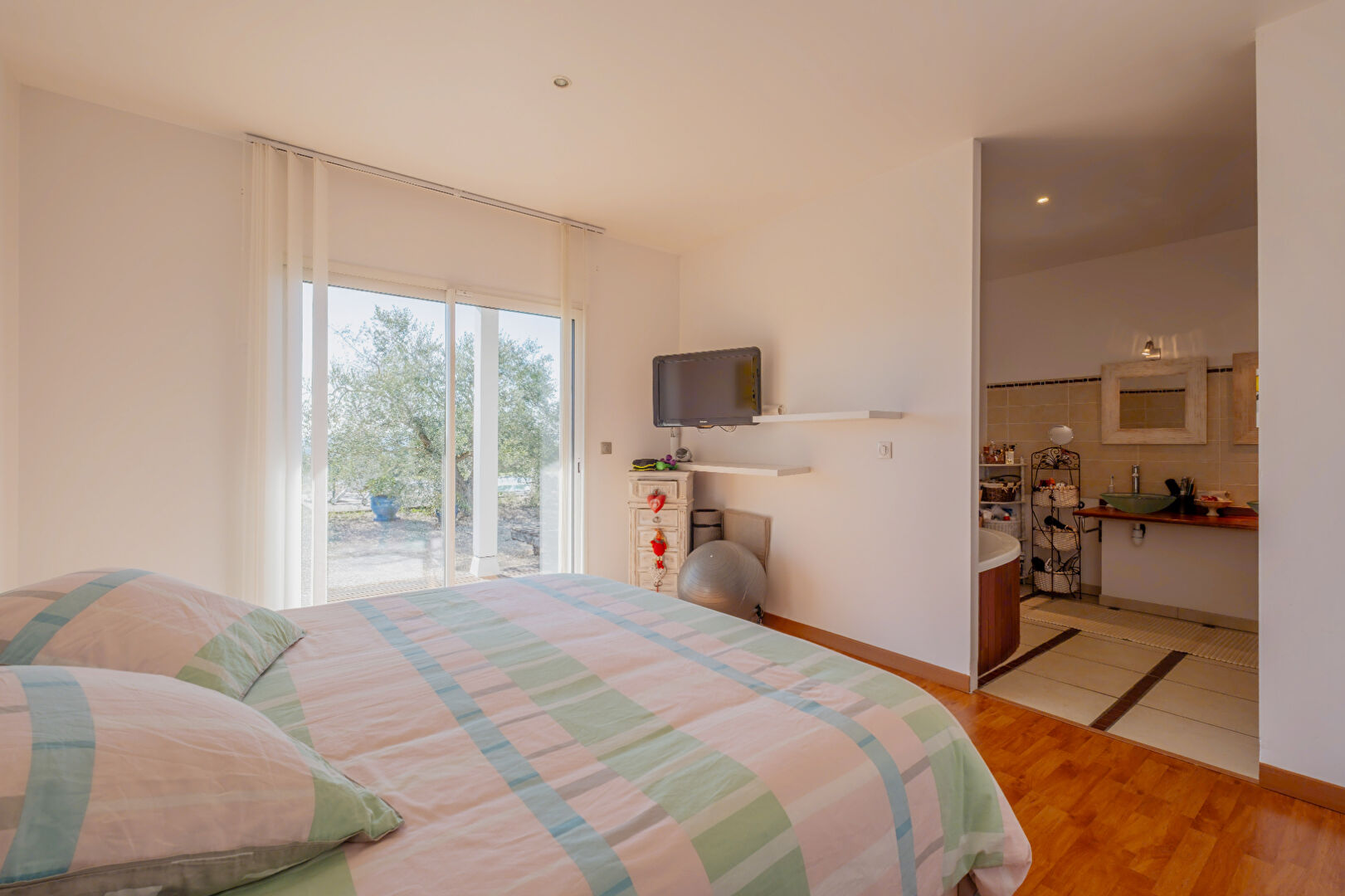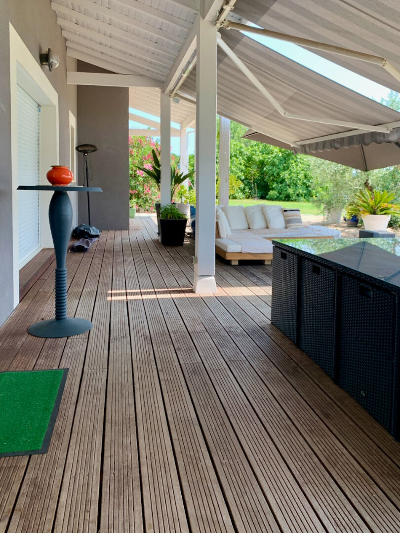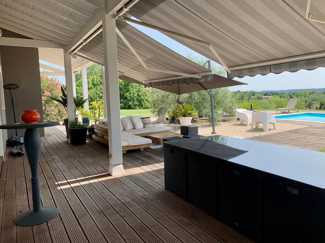 Villa de plain pied d'environ 151 m² avec vue panoramique.Secteur Nord Villeneuve-sur-Lot Située au nord de Villeneuve-sur-Lot, dans un quartier calme et recherché, à proximité des écoles et des commodités, cette villa ultra lumineuse construite en 2004 est vendue entièrement meublée ou non offre une tranquillité absolue de vie avec une vue imprenable sans vis-à-vis. D'une surface habitable de 151,46 m², elle comprend : Une spacieuse pièce de vie de 65,64m² avec cuisine américaine équipée, donnant sur une terrasse. Un premier espace nuit est composé de 2 chambres de 12,28m² chacune, une salle de bains et un WC indépendant. Une suite parentale de 35 m² avec dressing, salle de bains (douche + baignoire), WC séparé et un accès direct à la terrasse. Ainsi qu'un double garage d'environ de 34 m² attenant à la maison Les atouts de cette villa : -Grand terrain d'environ 3000 m² -Piscine chauffée (9,5 x 4 m) -Vue panoramique sublime -Double vitrage, volets roulants -Isolation complète, chauffage au sol électrique -Climatisation réversible dans les chambres -Cumulus électrique, VMC, adoucisseur d'eau -Système d'alarme Pour plus d'informations sur les risques éventuels associés à cette propriété, veuillez consulter le site Géorisques : www.georisques.gouv.fr Contactez-nous dès maintenant pour organiser une visite !