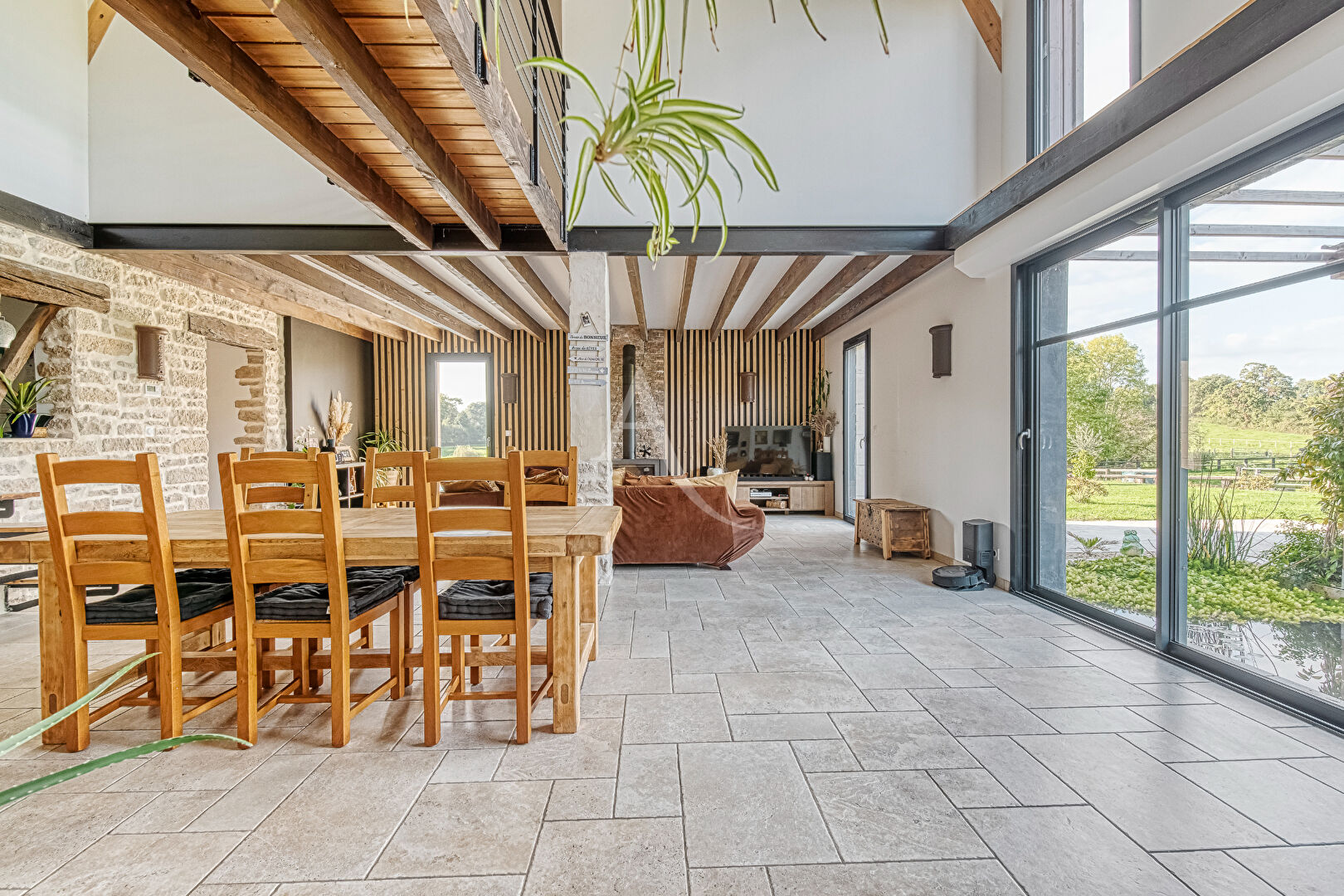 A seulement quelques minutes de la sortie d'autoroute, découvrez ce domaine rare et entièrement rénové depuis 2020. Niché dans un écrin de verdure, il offre un cadre de vie unique où se conjuguent passion équestre, hôtellerie de charme et art de vivre. La maison principale, construite en 2022, allie le charme de l'ancien à la modernité. Elle offre de généreux volumes baignés de lumière, ouverts sur un jardin paysagé avec terrasse, appentis, cuisine d'été et piscine privée. Le confort thermique est assuré par une pompe à chaleur performante, garantissant une consommation énergétique maîtrisée tout au long de l'année. Le domaine comprend également six gîtes indépendants, chacun doté d'un espace extérieur privatif, dont l'un équipé d'un jacuzzi. Une activité de location saisonnière est déjà en place, générant des revenus réguliers. A cela s'ajoute une loge à rénover, offrant une opportunité rare : celle de créer une salle de réception, idéale pour l'organisation de mariages, d'événements privés ou de séminaires. Un véritable atout pour diversifier l'activité et renforcer l'attractivité du domaine. Implanté sur un peu plus de 7 hectares, le site dispose également d'infrastructures complètes équines pour le confort et le bien-être des chevaux actuellement en pensionnat: écuries, boxes, manège couvert de 500 m² entièrement rénové, piste de 500 m en service, carrière en copeaux de bois, ainsi que des dépendances fonctionnelles et parfaitement entretenues. Le site est équipé de panneaux photovoltaïques, permettant une autosuffisance énergétique remarquable et une rentrée d'argent complémentaire grâce à la revente du surplus de production. Un atout économique et écologique qui renforce l'attrait du domaine. L'environnement naturel est tout simplement enchanteur : étang, mare et vastes prairies entourent la propriété, garantissant calme et sérénité à ses occupants comme à leurs hôtes. Un bien rare sur le marché, idéal pour développer une activité professionnelle équestre et touristique, ou pour toute personne en quête d'un cadre de vie exceptionnel à la campagne. L'avis du consultant : L'implantation judicieuse des bâtiments assure à chacun une intimité préservée, tout en facilitant une circulation fluide et harmonieuse sur l'ensemble du site. DPE : A (46) REF : 36210 - CE "Les informations sur les risques auxquels ce bien est exposé sont disponibles sur le site Géorisques : www.georisques.gouv.fr"