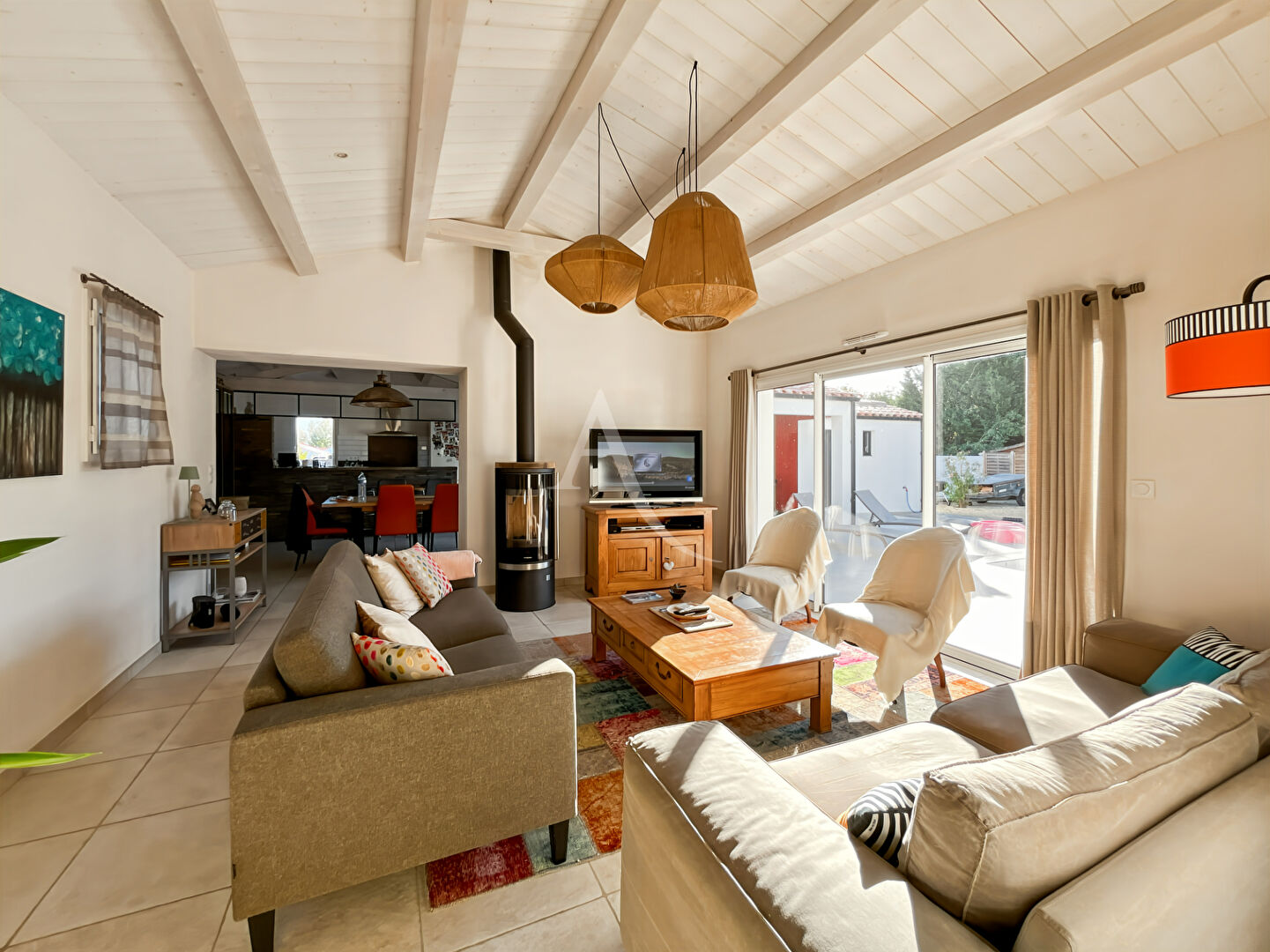 Maison La Barre de Monts, 5 pièces 152 m², En lisière de forêt, à quelques pas du Pey de la Blet ! Venez découvrir cette maison récente (2018), entièrement de plain-pied, alliant confort moderne et cadre verdoyant. Elle se compose d'une entrée avec placard, d'une spacieuse pièce de vie de 50 m² comprenant une cuisine aménagée et équipée ouverte sur le séjour-salon. L'espace nuit offre trois chambres avec placard, une salle d'eau, un WC indépendant, ainsi qu'une suite parentale avec sa propre salle d'eau. Vous trouverez également une buanderie avec placard, une pièce de rangement, un second WC, et un garage double carrelé attenant. A l'extérieur, profitez d'un terrain clos de 1 443 m², d'une piscine chauffée exposée plein sud, d'un local technique et d'un préau de 23,07 m². Prenez rendez-vous pour une visite ? vous serez séduit par ses prestations et son environnement privilégié ! Réf: 10667 Pour toute information complémentaire ou visite, contactez-nous au 02 51 68 52 76 ou par mail fromentine@ladresse.com (5.53 % honoraires TTC à la charge de l'acquéreur.)