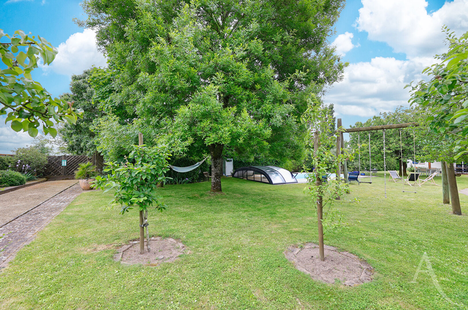 L'Adresse Montaigu vous présente cette belle propriété d'environ 142m2 de surface habitable sur un grand terrain de plus de 2400m2 et sa piscine sécurisée, entre Montaigu et St Hilaire de Loulay, à moins de 5 min de la gare et 3 min des commerces, accès facile vers Nantes et La Roche/Yon. La maison vous accueille par une large entrée, un salon-séjour triple exposition avec sa cheminée à insert mobile, une cuisine aménagée et équipée, 3 chambres sur parquet, 2 salles d'eau et un WC. A l'étage, une 4ème chambre avec placard. Une buanderie/arrière-cuisine, un double garage de 32m2, une cave et un atelier complètent cette maison fonctionnelle. Le jardin est arboré, entièrement clos et sans vis-à-vis pour profiter de la piscine et de son terrain de pétanque. Verger et potager. Les plus : terrain entièrement constructible, ravalement 2025, chauffage au sol, assainissement fosse toutes eaux conforme. Idéal pour une famille qui souhaite à la fois la tranquillité et la proximité des commodités ! Pour toute question et pour visiter, contactez Adeline au 0602075051 ou www.ladresse.com Les informations sur les risques auxquels ce bien est exposé sont disponibles sur le site Géorisques : www.georisques.gouv.fr Adeline LE ROC'H (EI) Agent Commercial - Numéro RSAC : 829 325 943 - LA ROCHE SUR YON.