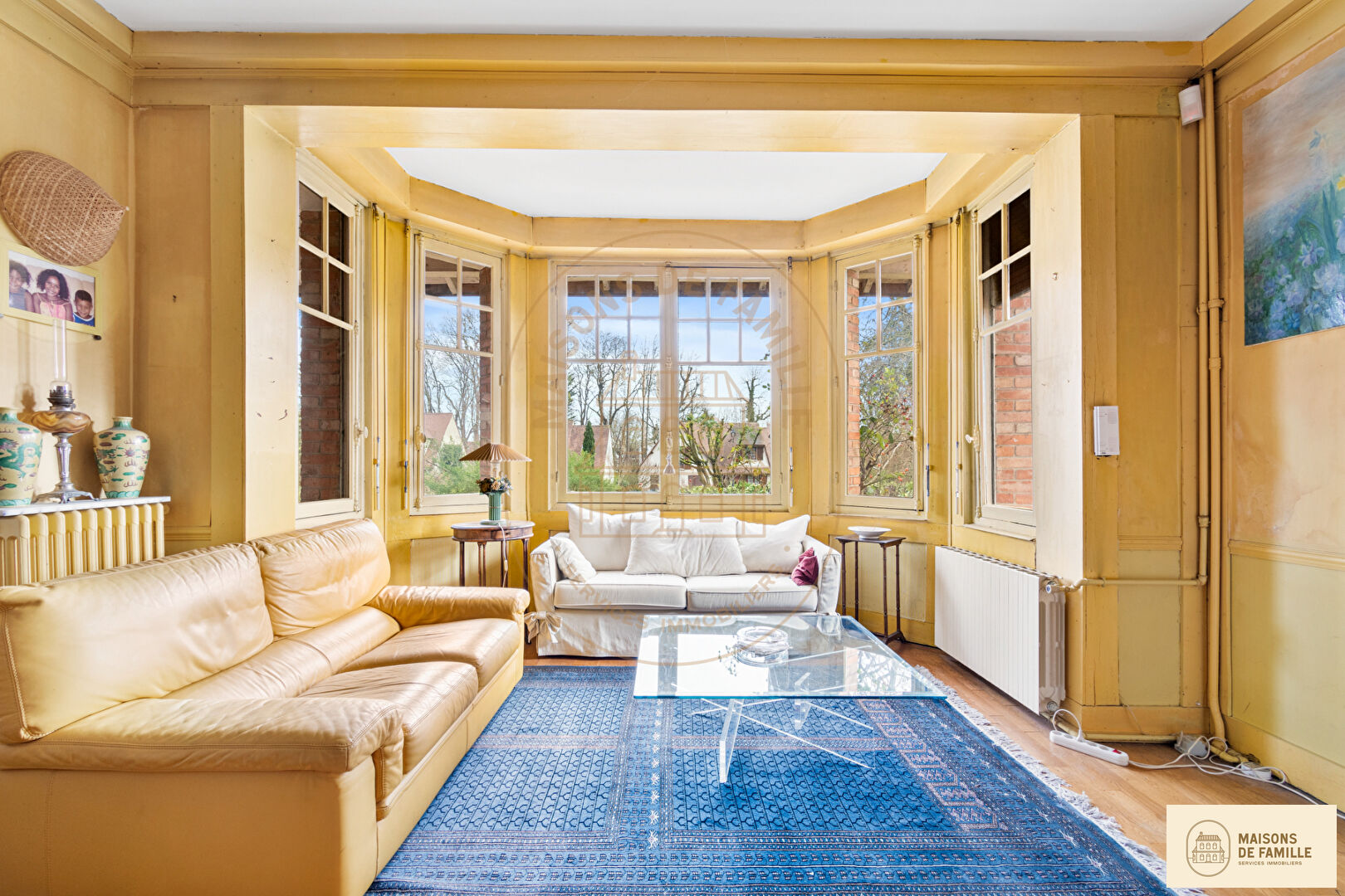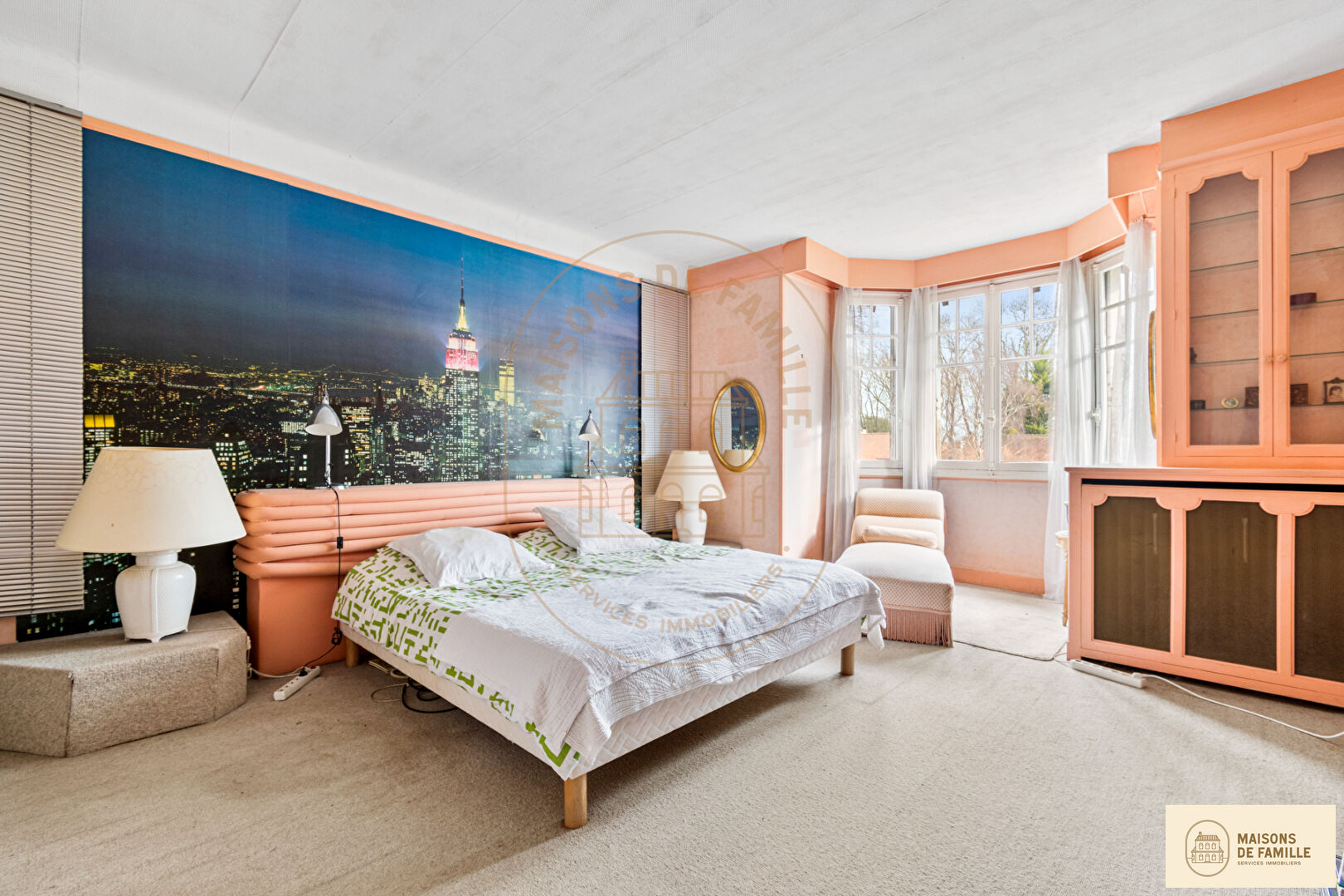 Maisons de Famille Immobilier, l'expert de la vente de maisons dans l'ouest parisien. ANDRESY - Quartier Centre - Dans un environnement pavillonnaire privilégié, en face de l'ile Nancy, à 500m de la gare Maurecourt (ligne J) et à proximité des commerces et des écoles, nous vous présentons *Giverny*, cette magnifique demeure de 300m2 des années 30, à mi chemin entre la maison à colombages et le "style américain", est édifiée sur un vaste terrain arboré de 2517m2. Cette propriété entièrement à rénovée, propose des caractéristiques uniques (volumes, luminosité, charme de l'ancien, belles hauteurs sous plafond, bow-windows), qui sauront vous séduire. Elle est composée de 4 niveaux répartis comme suit : Au rez-de-chaussée, belle entrée desservant un salon avec bow-window de 31m2 accompagné d'une véranda de 10m2, salle-à-manger avec second bow-window de 30m2, cuisine séparée de 14m2 avec cellier et une salle de bains avec WC. Au 1er étage, un dégagement desservant une suite parentale avec salle de bains et rangements, 3 autres chambres, un bureau, une salle d'eau et un second point d'eau. Au 2ème étage sous combles, un vaste plateau aménageable de 60m2 au sol. Sous-sol comprenant chaufferie, atelier et cave-à-vins. Le terrain clos et arboré de 2517m2 comporte deux terrasses, une dépendance/maisonnette pouvant être aménagée en 2 pièces, deux garages et de nombreux emplacements de stationnements. Une maison de caractère unique avec énorme potentiel à découvrir sans plus tarder ! Contact 7/7 Cédric 06.34.09.06.77 (5.00 % honoraires TTC à la charge de l'acquéreur.)