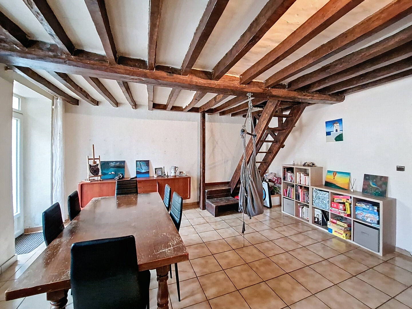 Dans un village au charme préservé, cette maison ancienne semble raconter son histoire à travers ses colombages et ses volumes généreux. Dès le portail franchi, on ressent une atmosphère apaisante, celle des lieux où l'on se sent bien, simplement. Le calme des environs, la voie verte à quelques pas pour les balades en famille ou les virées à vélo, tout ici invite à ralentir et à savourer la douceur de vivre. A l'intérieur, la pièce de vie s'impose comme le coeur de la maison. Environ 47 mètres carrés baignés de lumière, traversés de poutres apparentes et réchauffés par un poêle à bois qui diffuse une chaleur douce. Depuis le séjour, on accède à une terrasse intime, à l'abri des regards, où l'on imagine déjà les petits déjeuners d'été et les fins de journée paisibles. La cuisine aménagée, conviviale et pratique, prolonge naturellement cet espace de vie, créant une belle harmonie entre authenticité et confort du quotidien. L'espace nuit se compose de deux grandes chambres en enfilade, dont l'une s'ouvre directement sur le jardin. La salle de bain, lumineuse, ainsi qu'un cellier, une buanderie et des toilettes séparées complètent ce niveau de plain-pied, pensé pour un quotidien simple et agréable. L'escalier déjà en place mène à un grenier d'environ 56 mètres carrés à aménager selon vos envies. Le jardin clos, verdoyant et sans vis-à-vis, offre un véritable cocon de tranquillité. On y trouve un garage attenant accessible depuis la rue, et surtout un formidable potentiel d'évolution. Au fond du jardin, une grande grange d'une trentaine de mètres carrés attend, elle aussi, une nouvelle vie. Atelier, studio, pièce d'amis? tout y est possible. Une annexe cadastrée avec partie vitrée et une cave voûtée viennent parfaire cet ensemble plein de caractère.