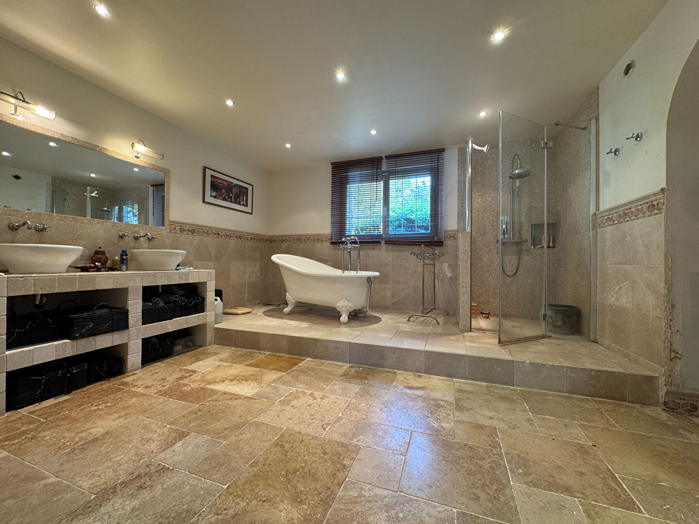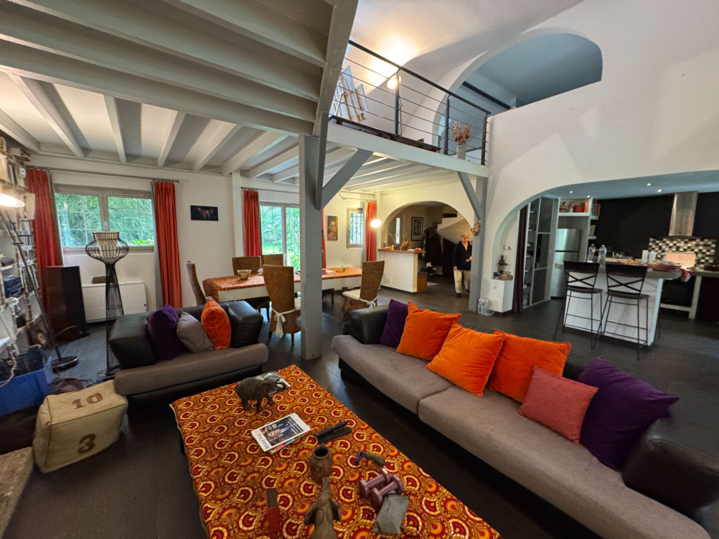 Environnement exceptionnel et calme absolu pour cette très belle maison récente de 1982 de très bonne construction , édifiée sur un magnifique terrain plat et arboré de 3960m2 avec sa piscine chauffée sans aucun vis à vis. Spacieuse réception cathédrale avec cheminée, ouverte sur cuisine avec ilôt central de 100m2 , donnant sur terrasse et jardin Sud-Ouest-Spacieuse suite parentale de 50m2 donnant sur jardin . A l 'étage: Belle mezzanine : salon d'étage + bureau ( 60m2) -2 chambres avec ses salles de bains . Garage - Buanderie/ laverie Son intérieur et son environnement rendent cette propriété tout à fait UNIQUE ! A voir ! REF: 2769 (4.18 % honoraires TTC à la charge de l'acquéreur.)